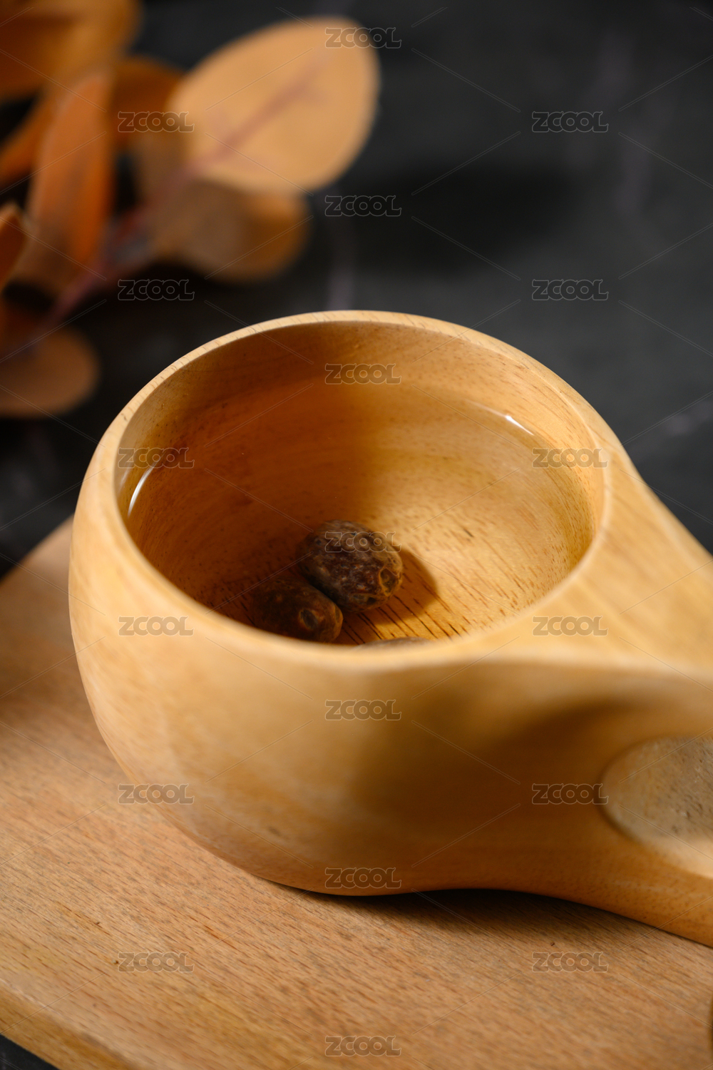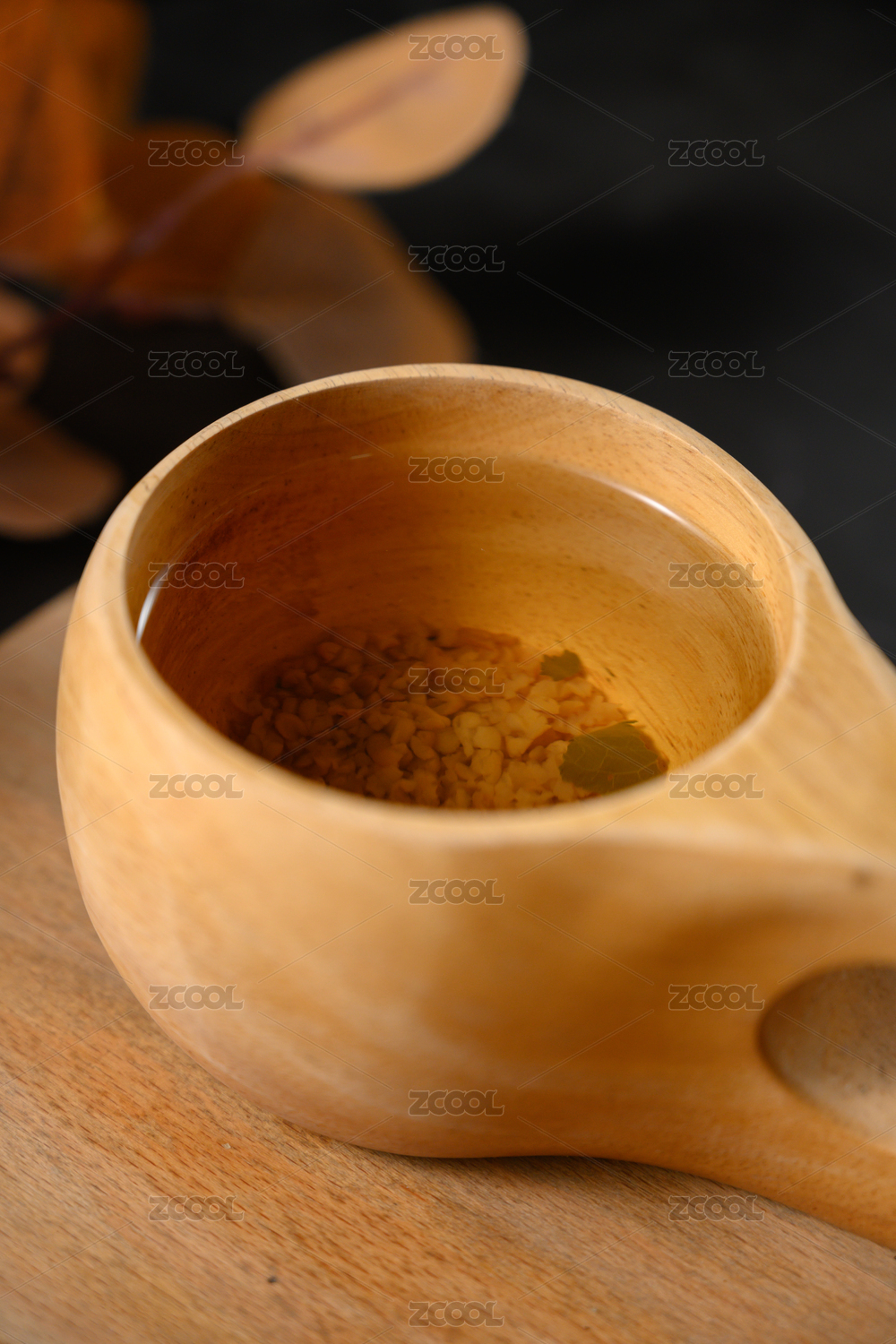桌面上个的杯子里的甘甜可口的龙胆草茶