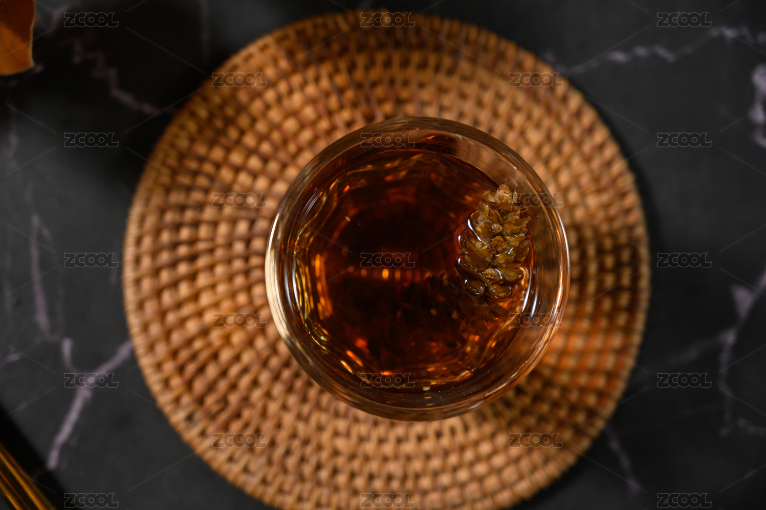 桌面上的杯子里的甘甜可口的玉兰花茶