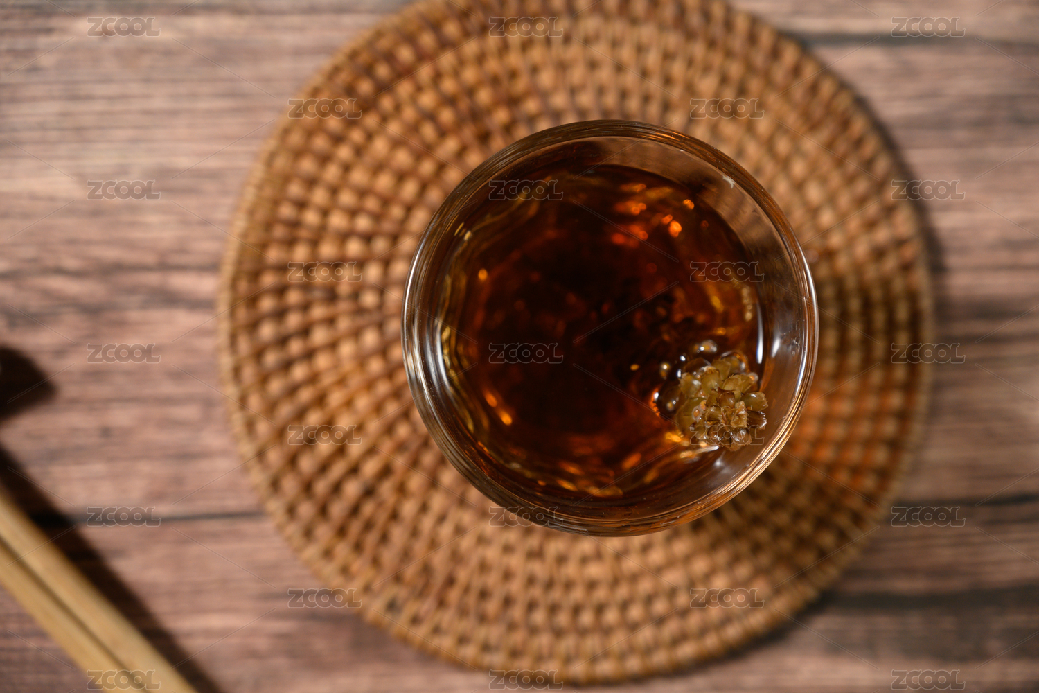 桌面上的杯子里的甘甜可口的夏枯草凉茶