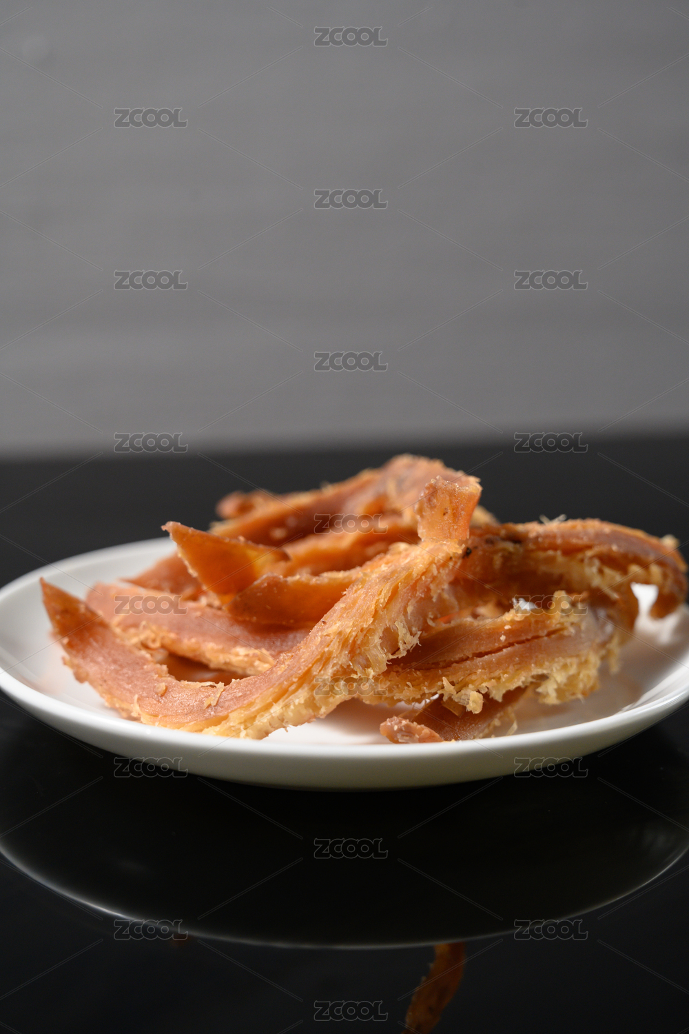 桌面上的盘子里的美味可口的鱿鱼丝