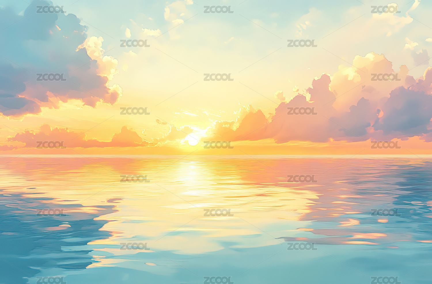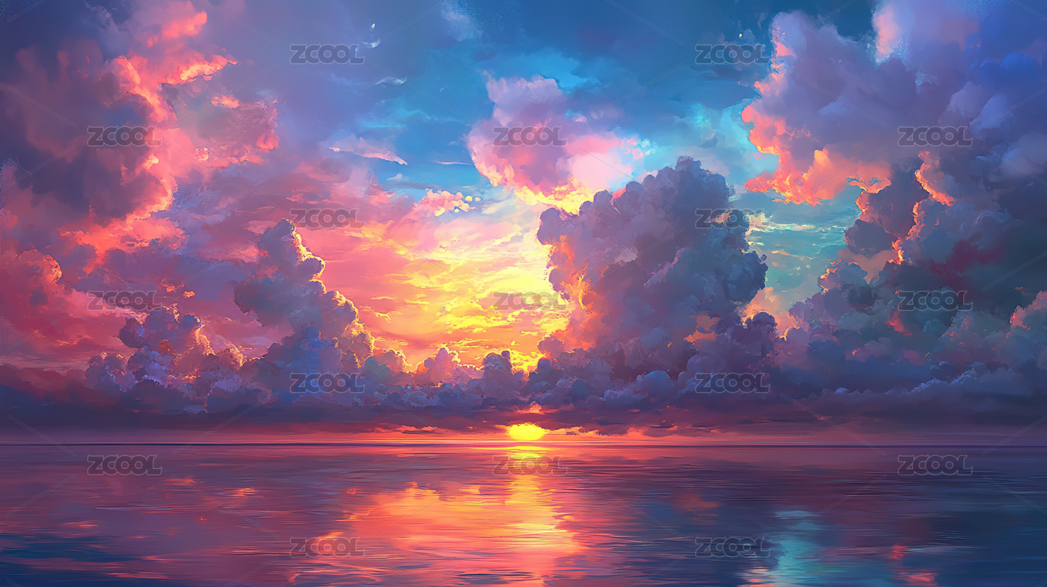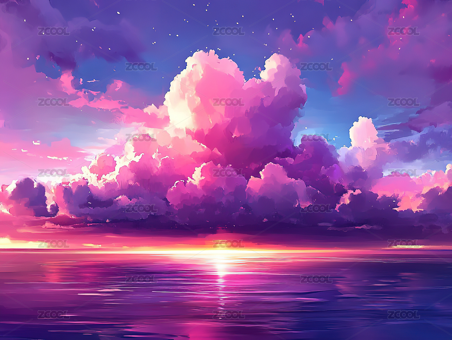 AI数字艺术,户外,天空,风景,云,自然,海洋,日落,自然美,宁静