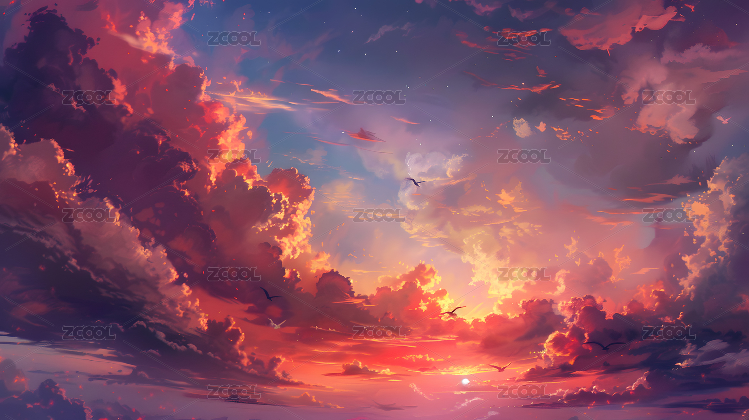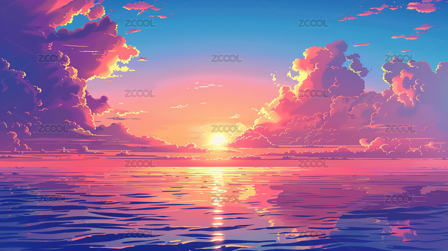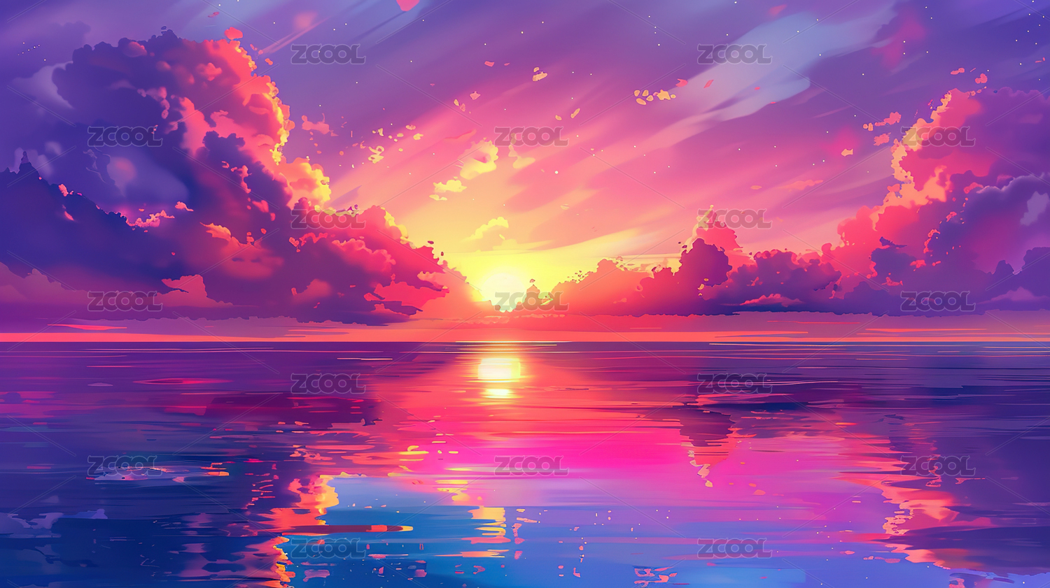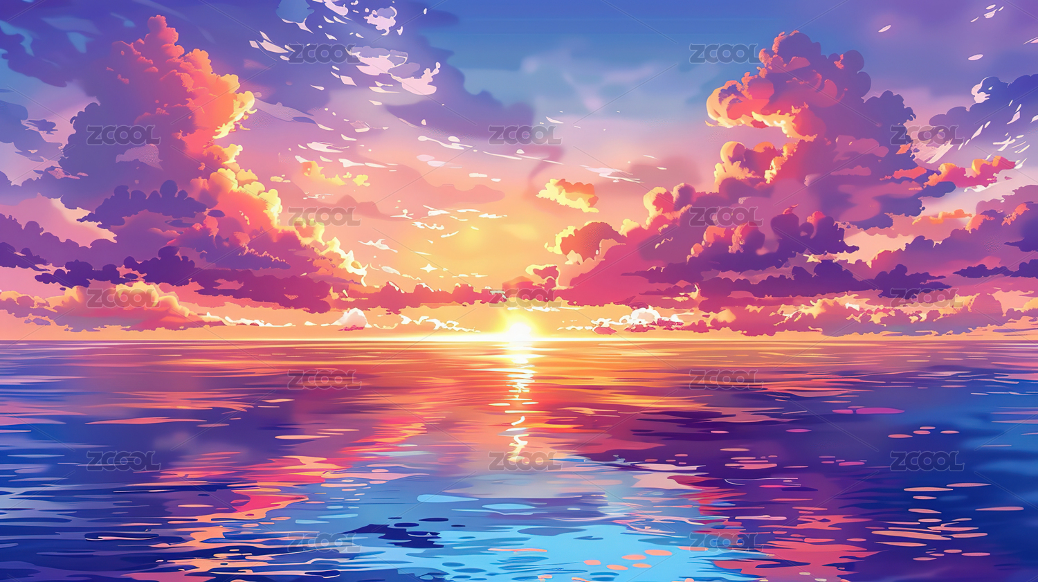 AI数字艺术,户外,天空,风景,云,自然,海洋,日落,自然美,宁静