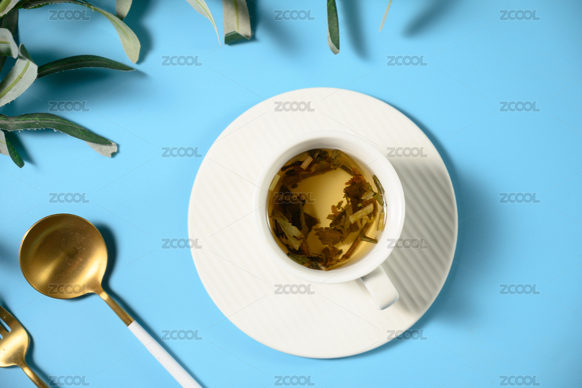 桌面上的杯子里的甘甜可口的玉兰花茶