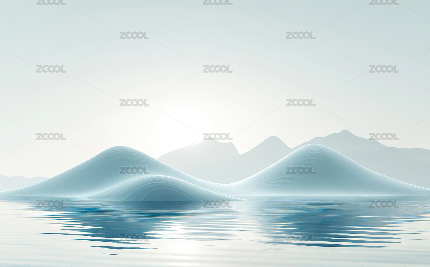 风景,地形,天空,AI数字艺术,高山,插画,自然美,蓝色,湖