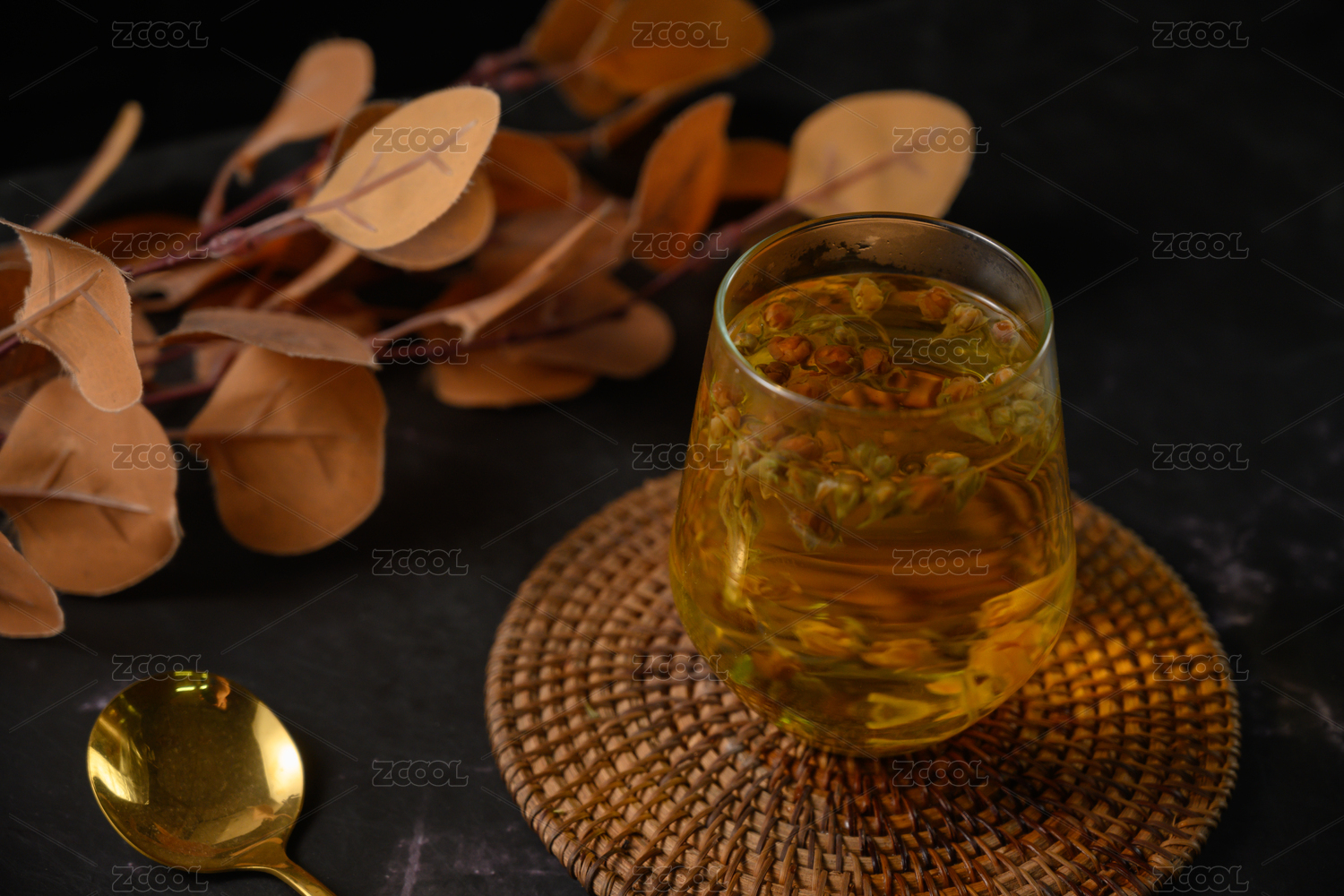 桌面上的杯子里的甘甜可口的玉兰花茶