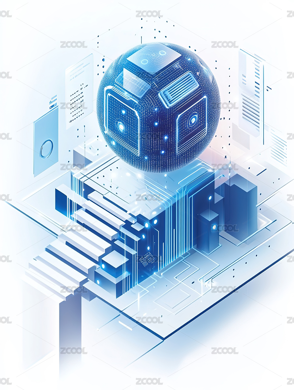 手掌托着炫彩魔方核心方块网络存储科技插画