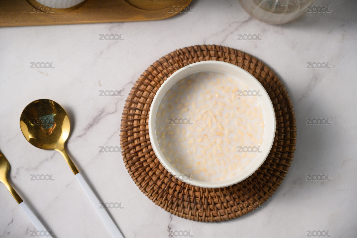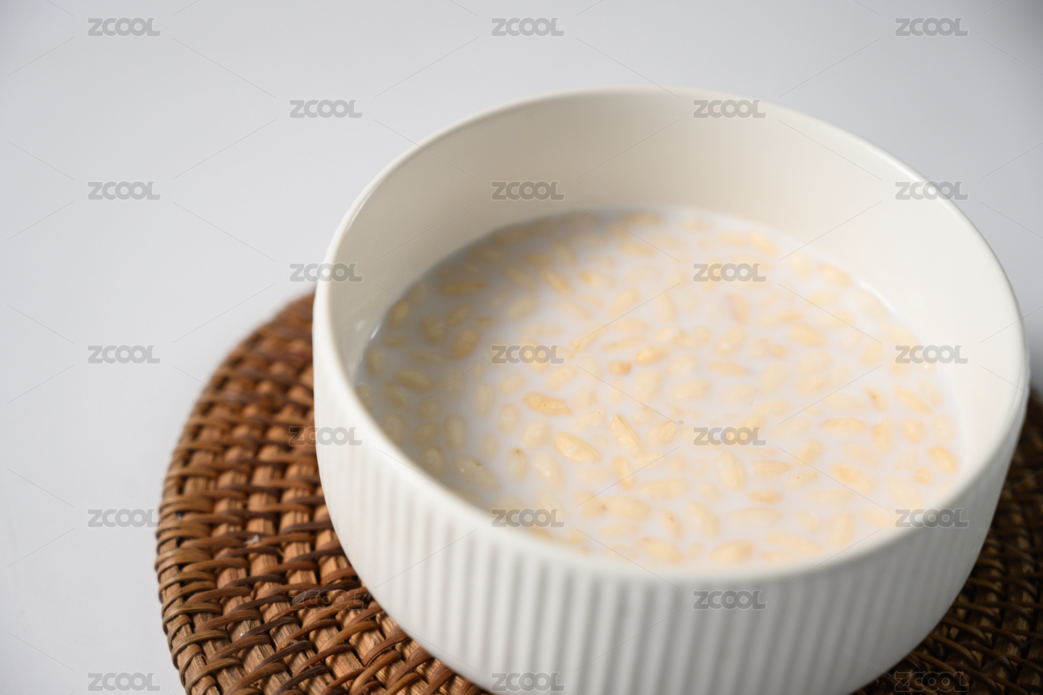 桌面上的碗里的美味可口的薏米小米粥