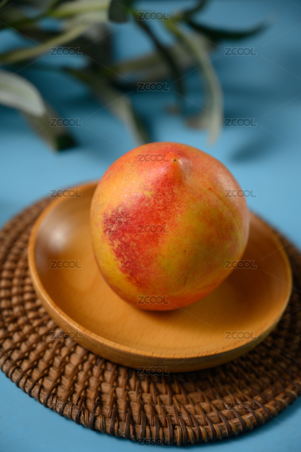 桌面上的盘子里的美味可口的新鲜黄桃