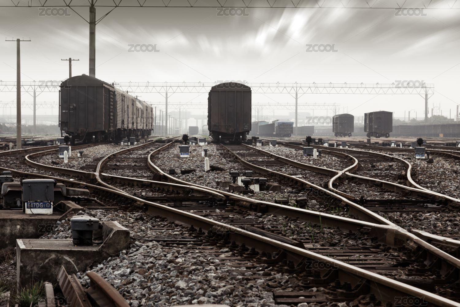 凌晨的货运火车站,铁轨,火车,贸易往来