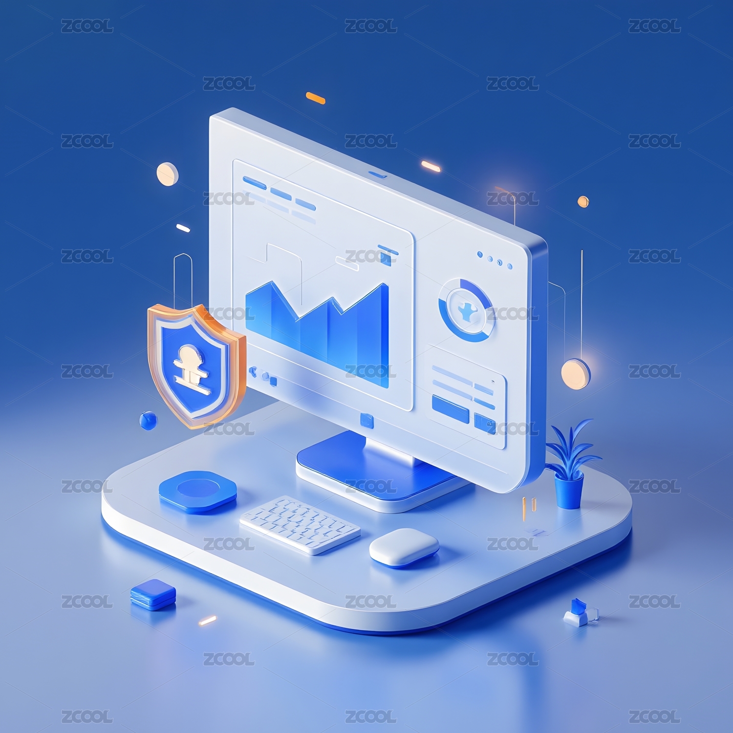 蓝色盾牌图标科技感设计