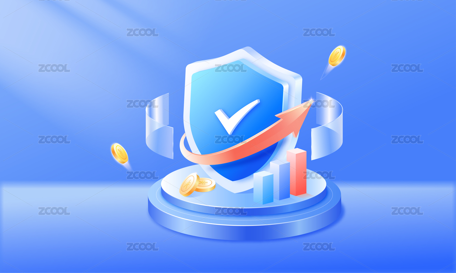 稳健理财盾牌保护数据增长 红色上涨箭头