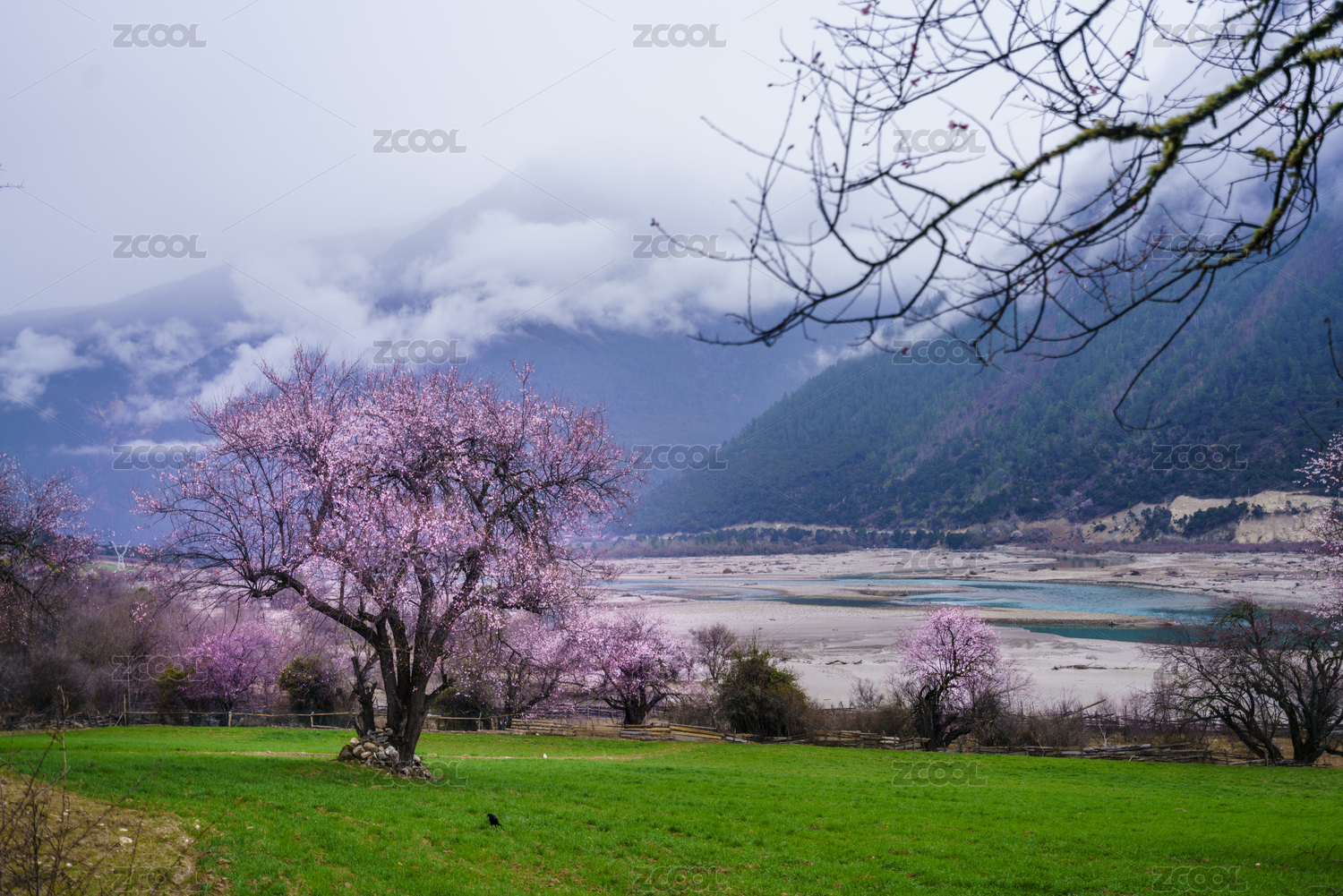 中国西藏林芝南迦巴瓦峰雪山下的桃花源