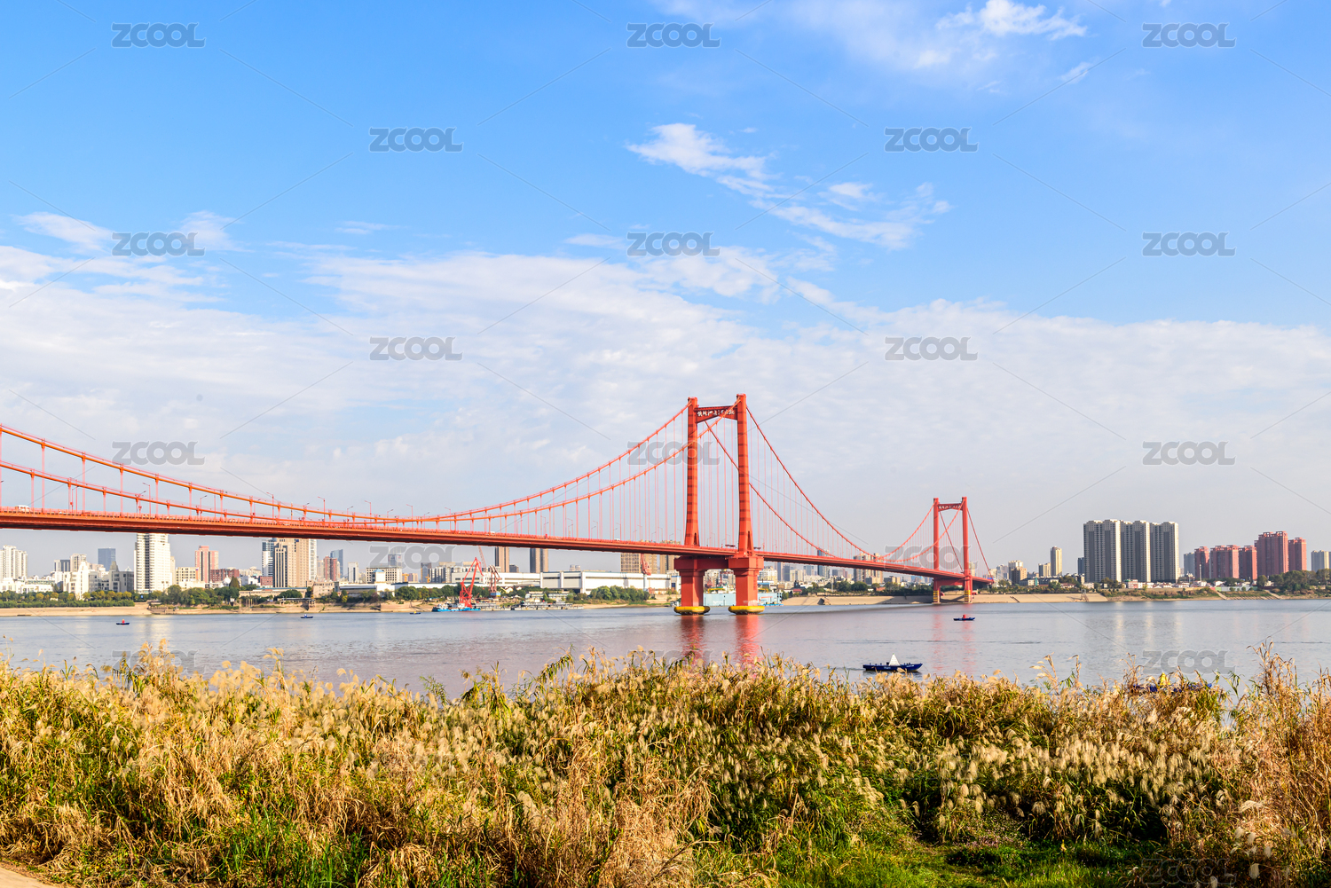 中国武汉鹦鹉洲大桥和芦苇