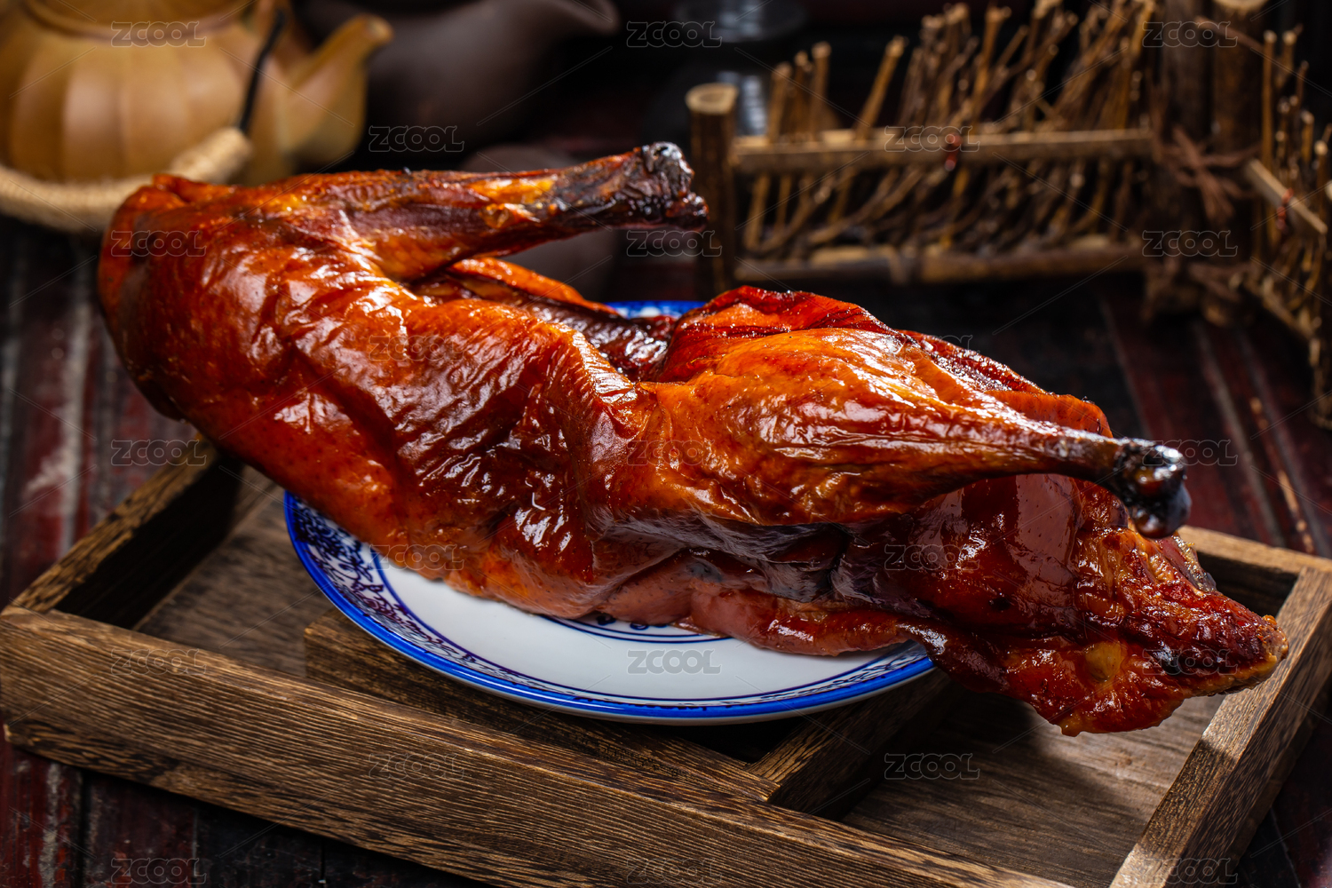 复古风背景里的粤式烧鸭