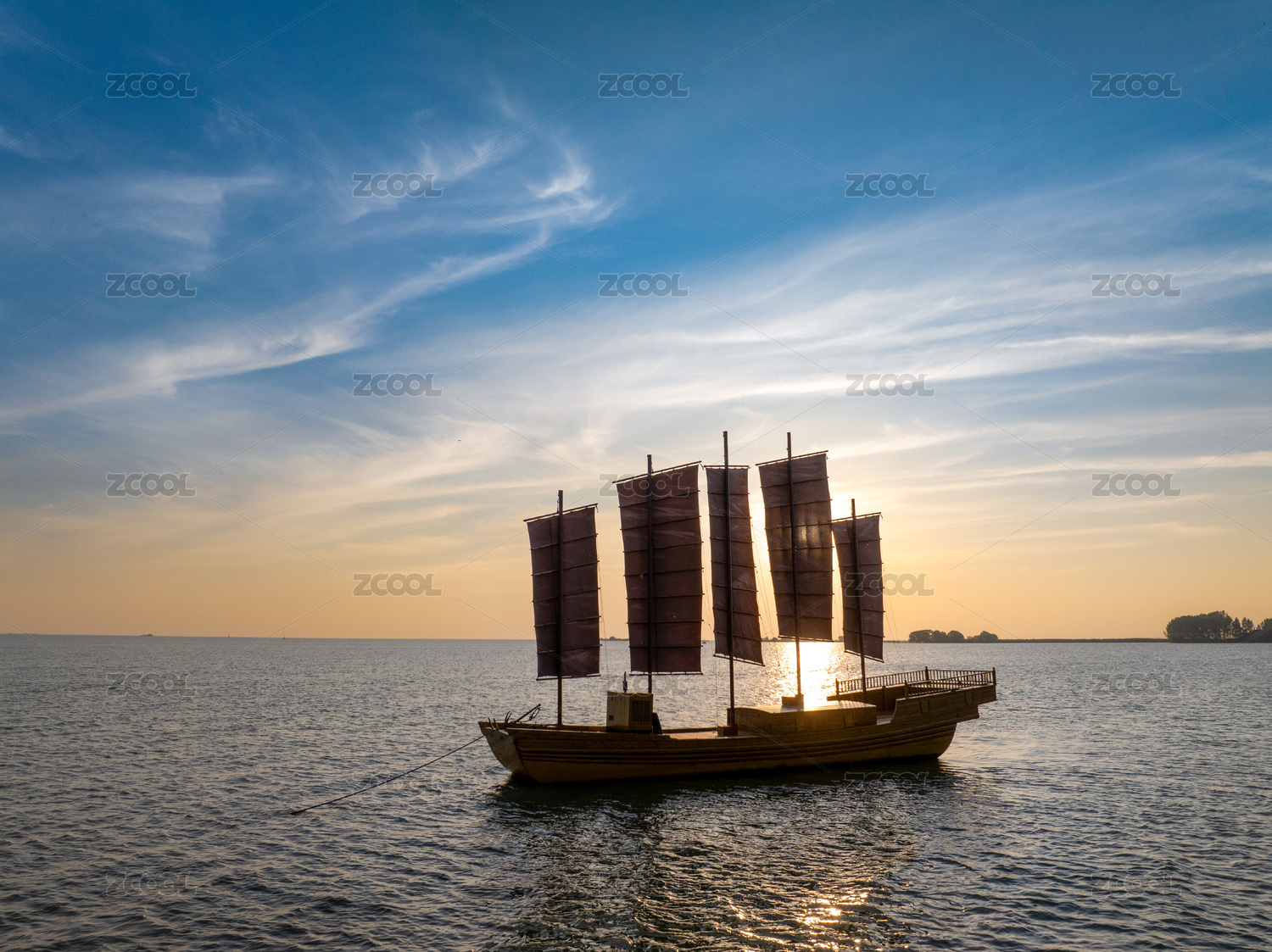 江苏淮安:史诗级晚霞中的洪泽湖帆船
