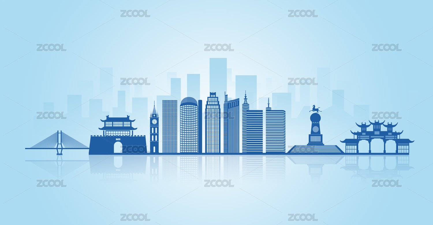 中国甘肃省天水市地标建筑剪影城市天际线背景