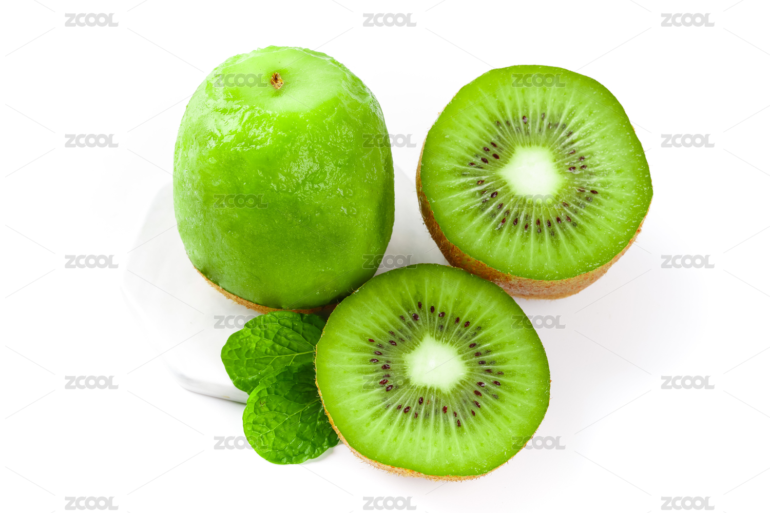 白底上放着猕猴桃和两块周至绿心猕猴桃