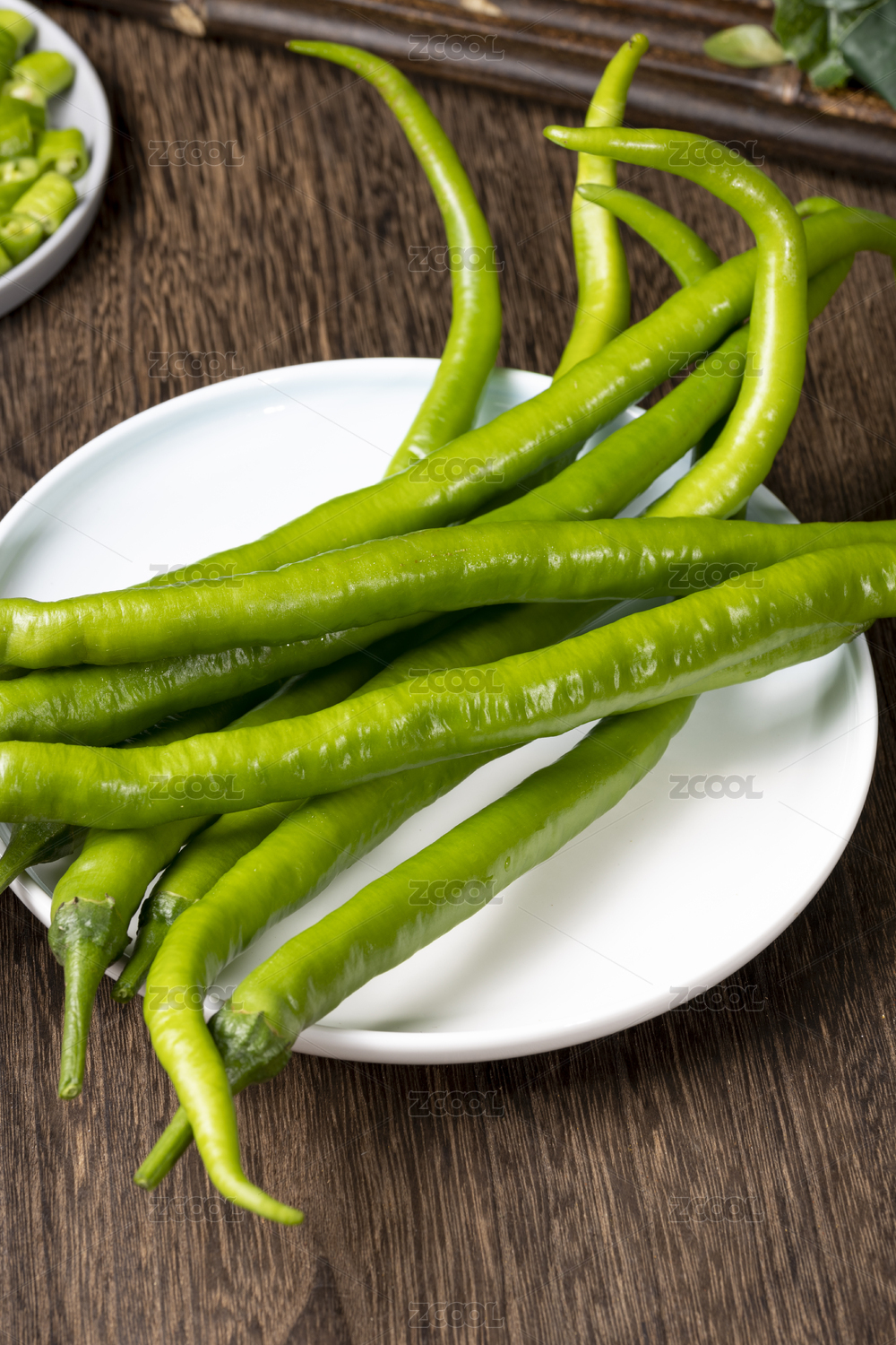 黑石板上放着长辣椒和切段的二荆条线椒