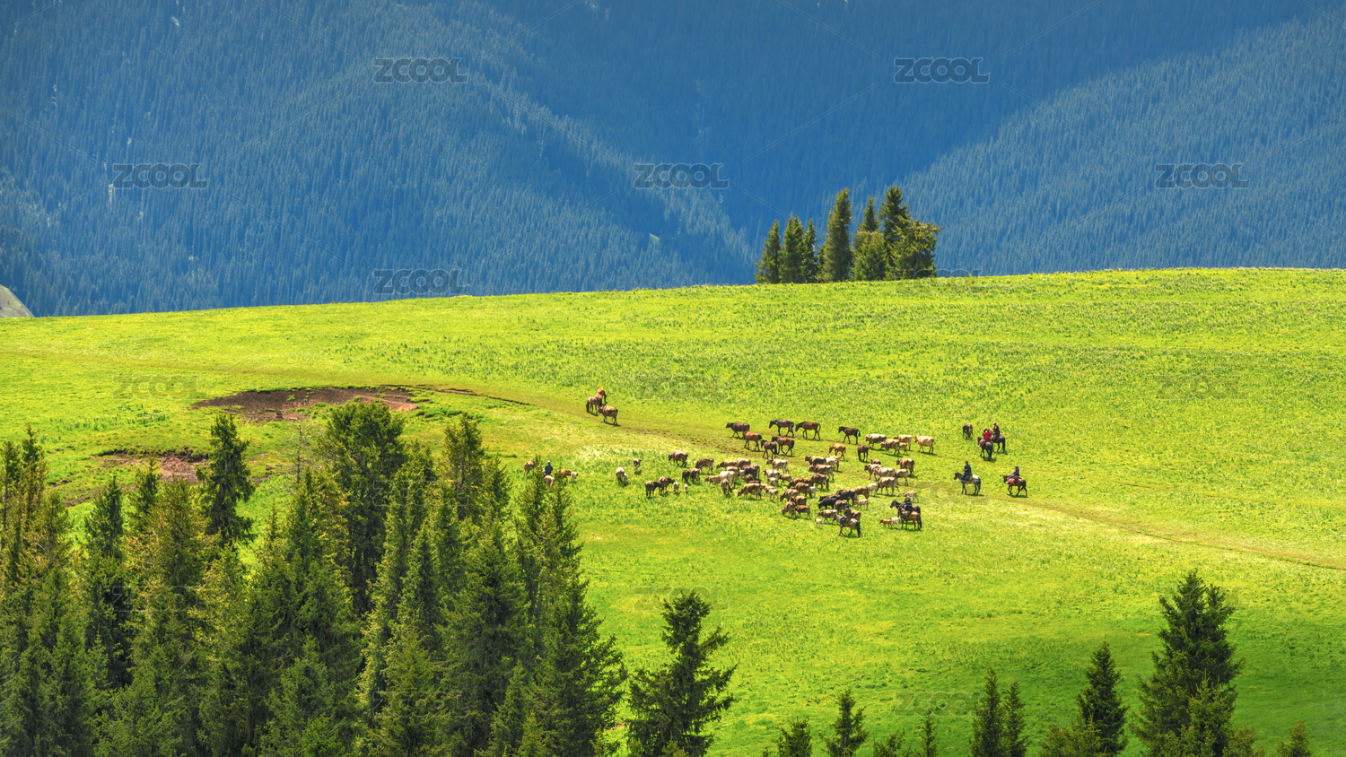 中国新疆伊犁那拉提草原高山草甸牛自然风光