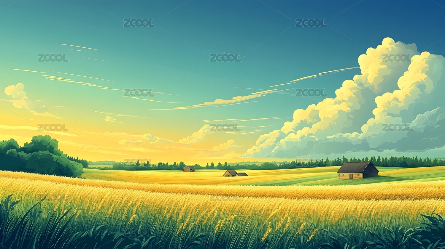乡间小屋与麦田