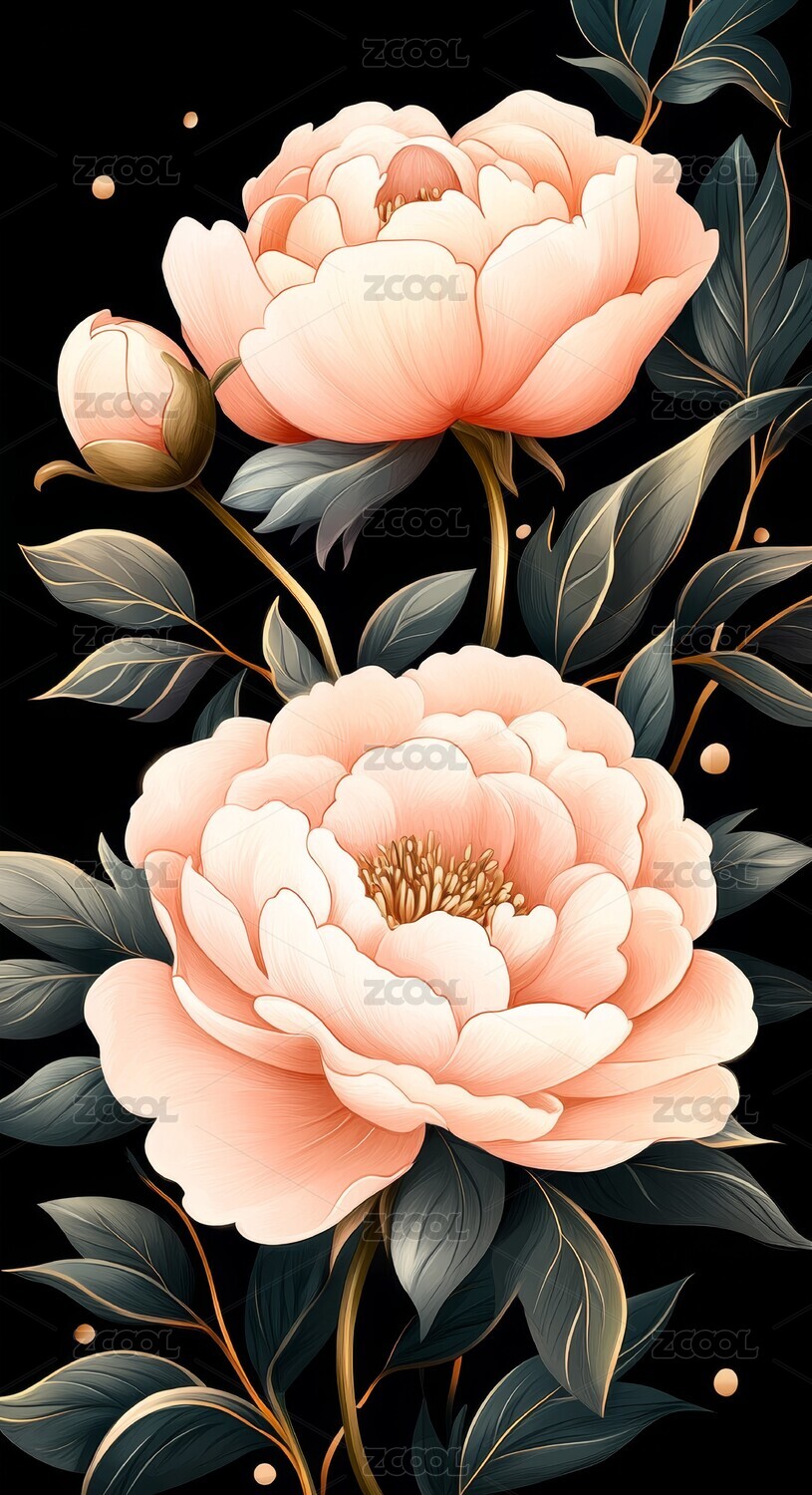 DXCZ202405,时尚,复古,植物花卉,牡丹,国风,印花,图案,插画