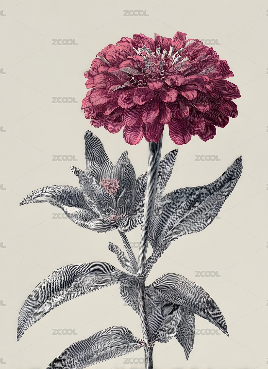 紫红色百日菊水彩插画 静谧自然