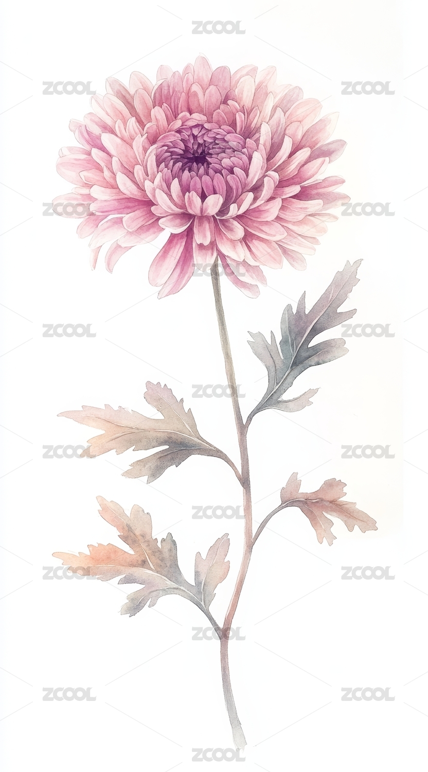 水彩粉紫菊花
