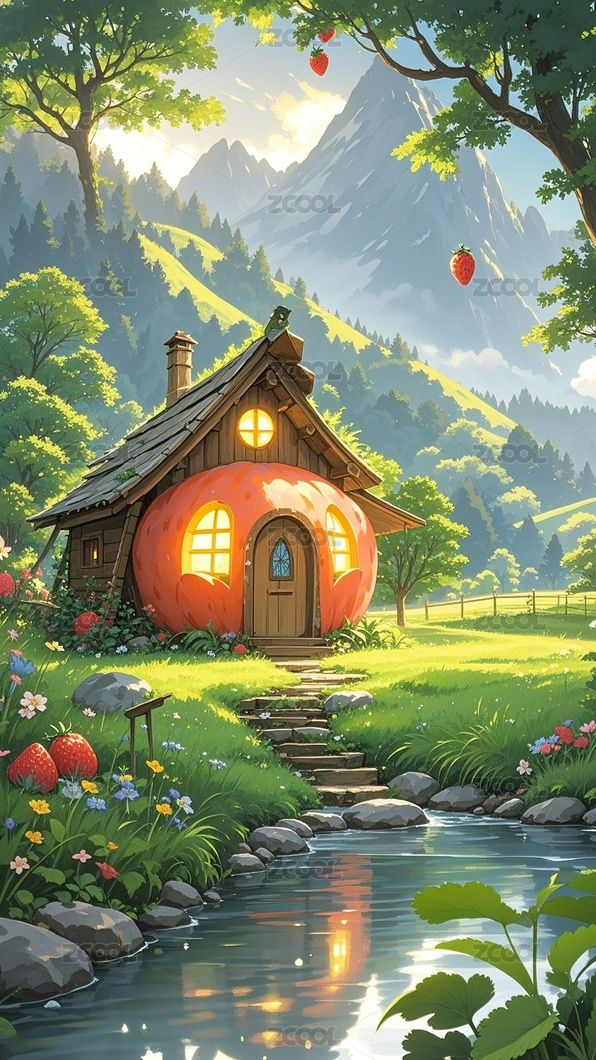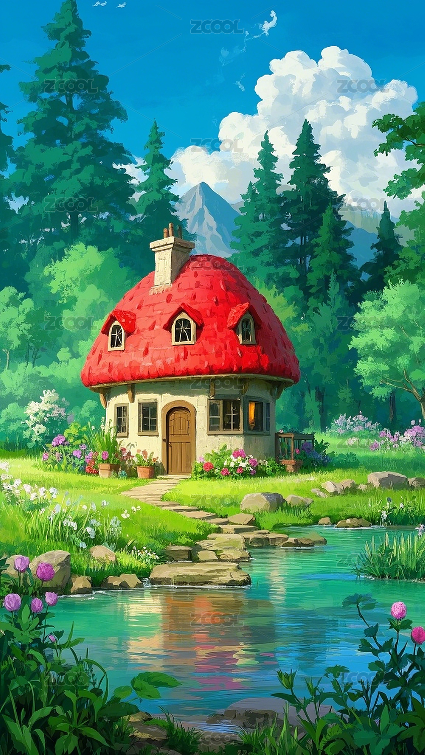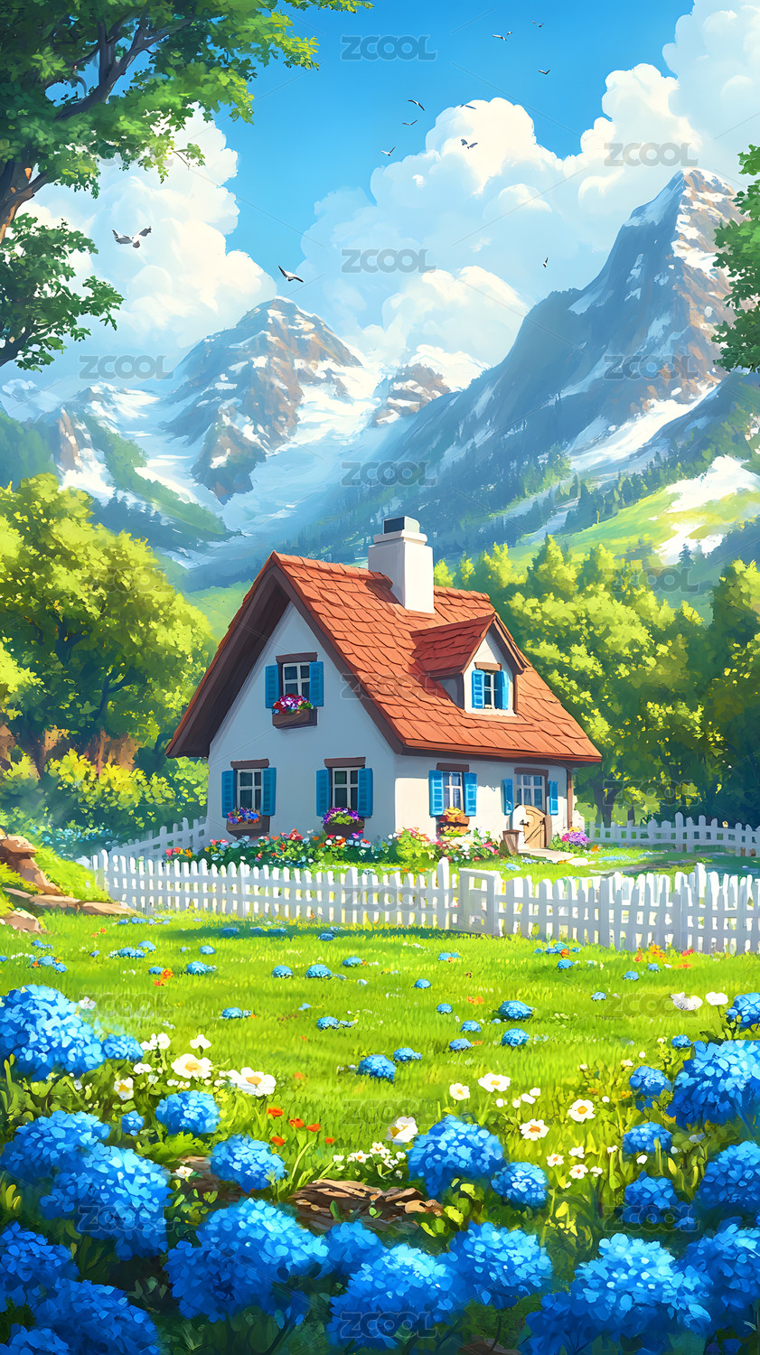 卡通,草地,房子,花朵,背景,壁纸,手机,电脑,桌面,卡通壁纸