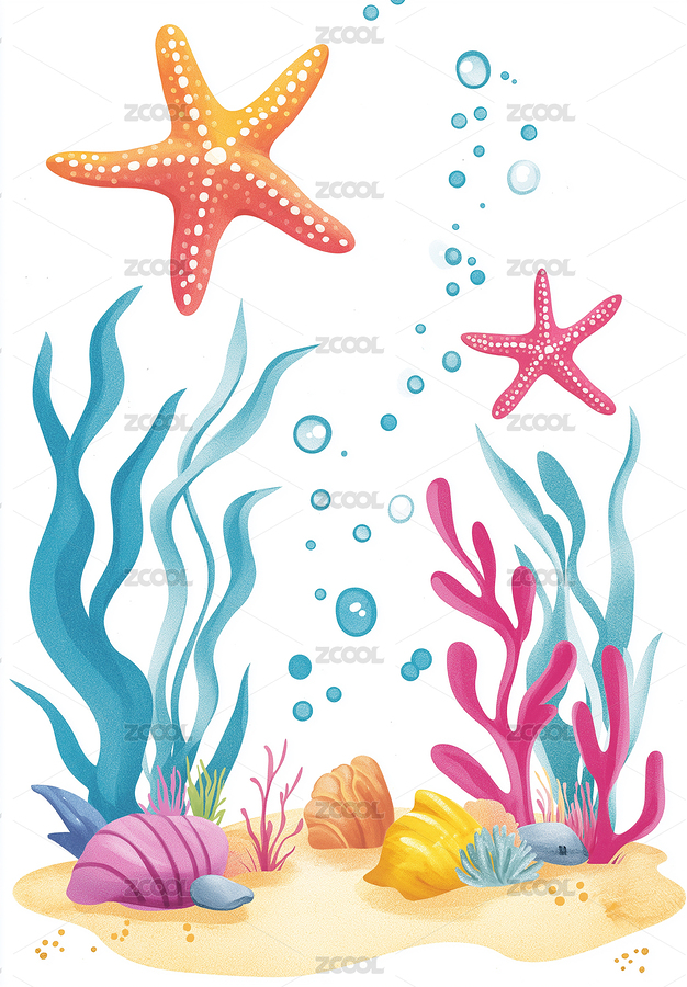 海洋生物多彩风海底场景