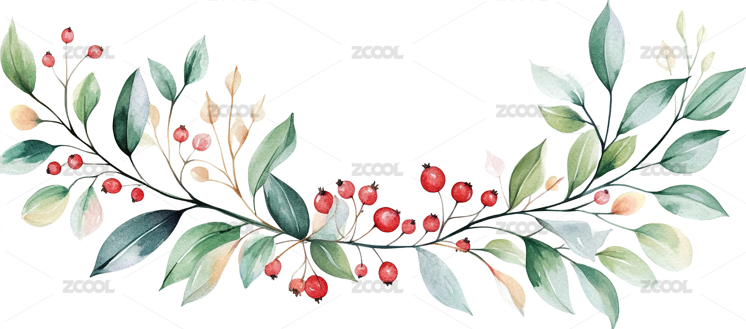 水彩红果清新雅致