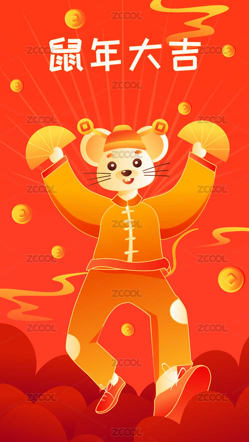 卡通2020年鼠年中国风新年喜庆背景矢量插画
