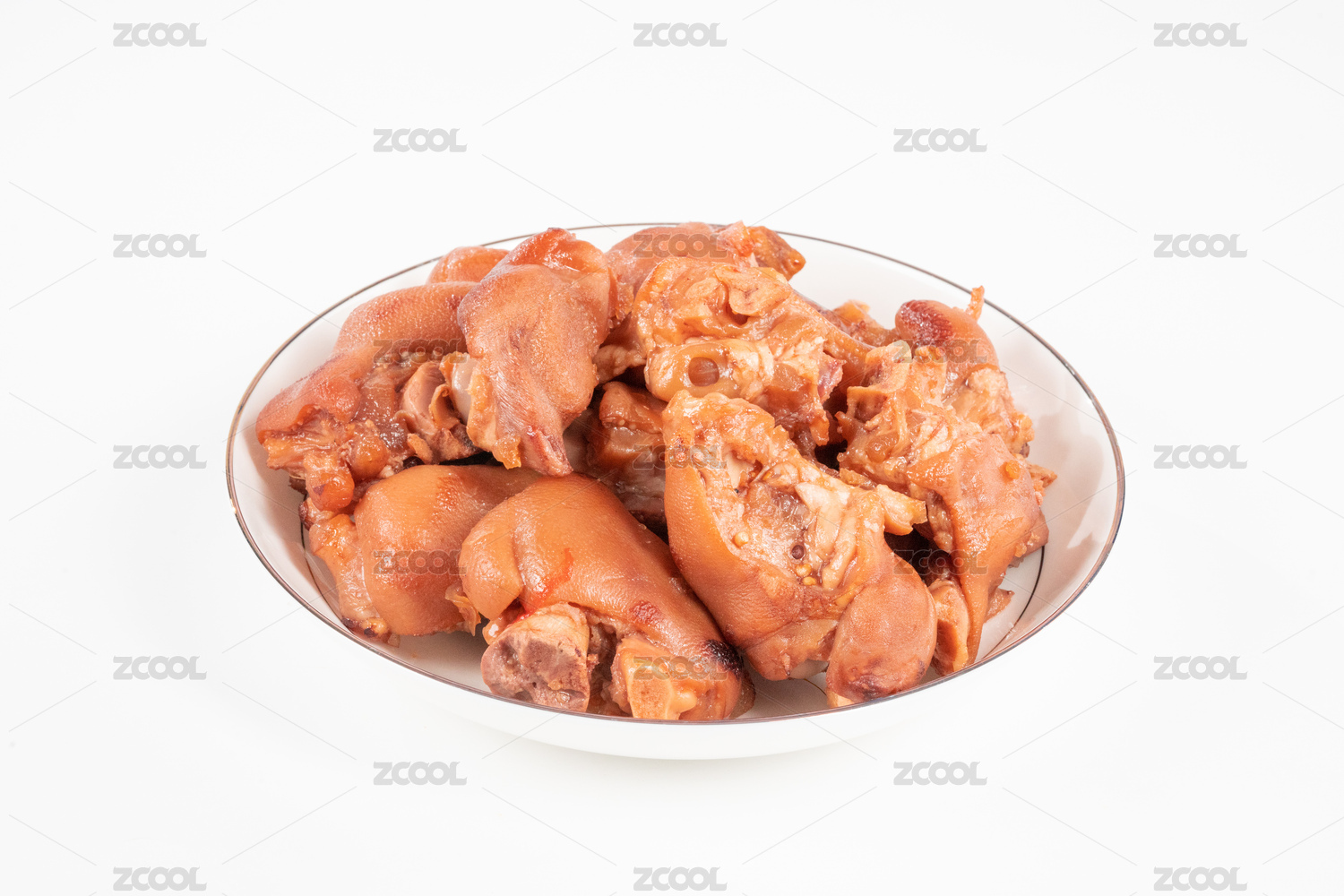 纯白色背景下的五香脱骨猪手