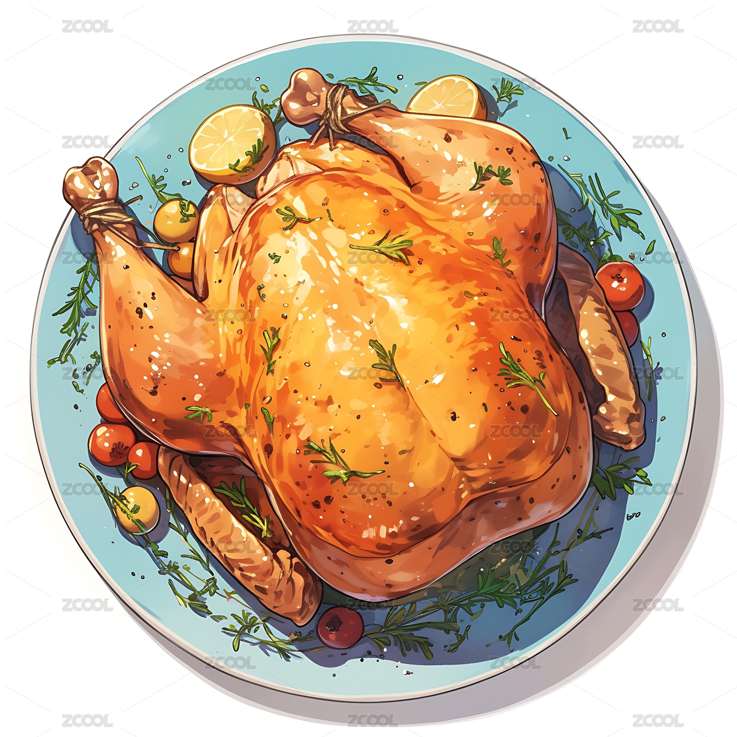 手绘卡通美味的烤鸡插画