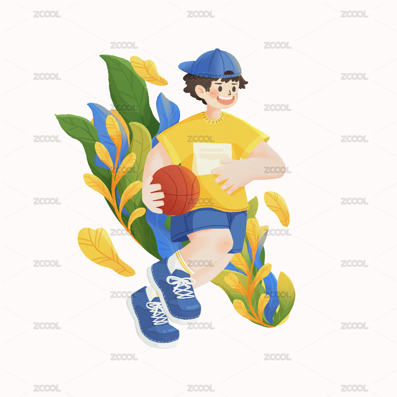 活力篮球少年运动插画