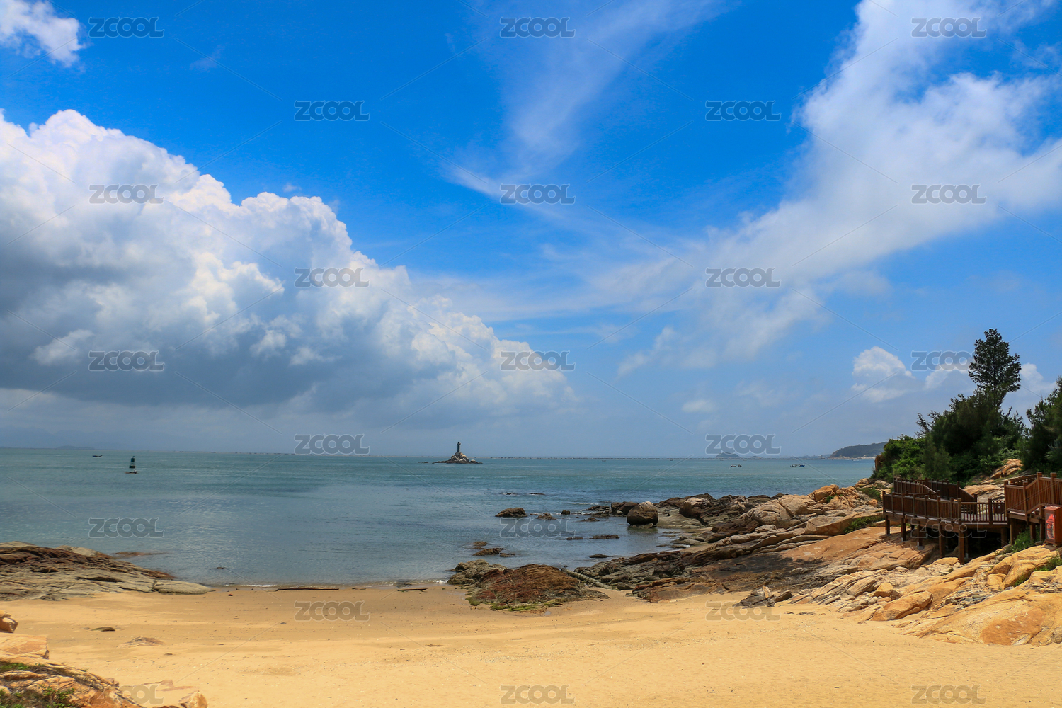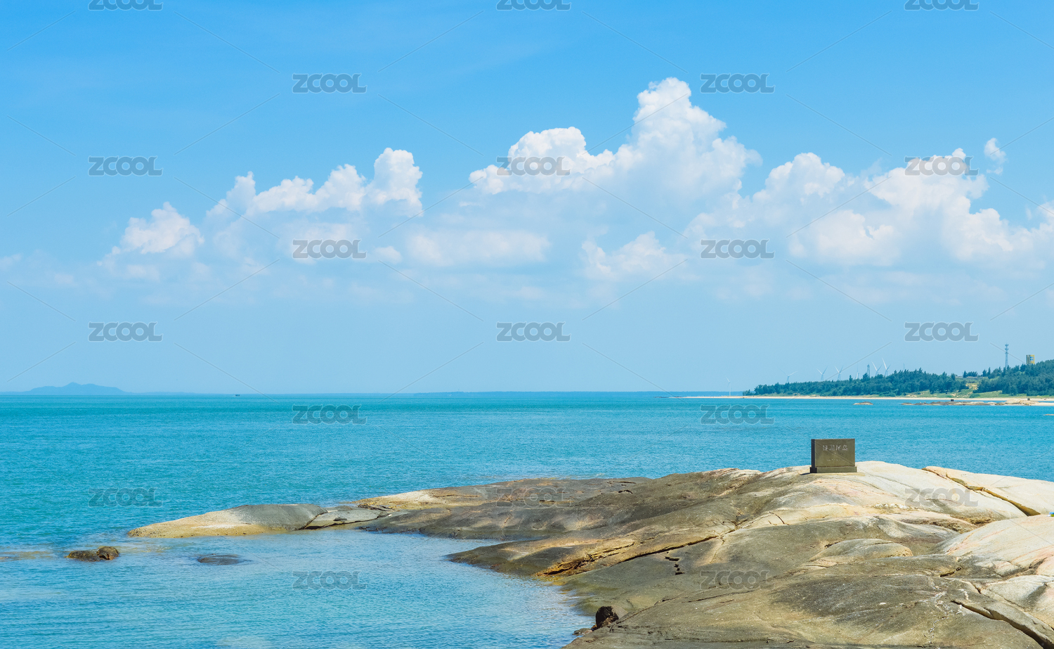 中国福建省东山岛蓝天白云下的礁石和海面风光