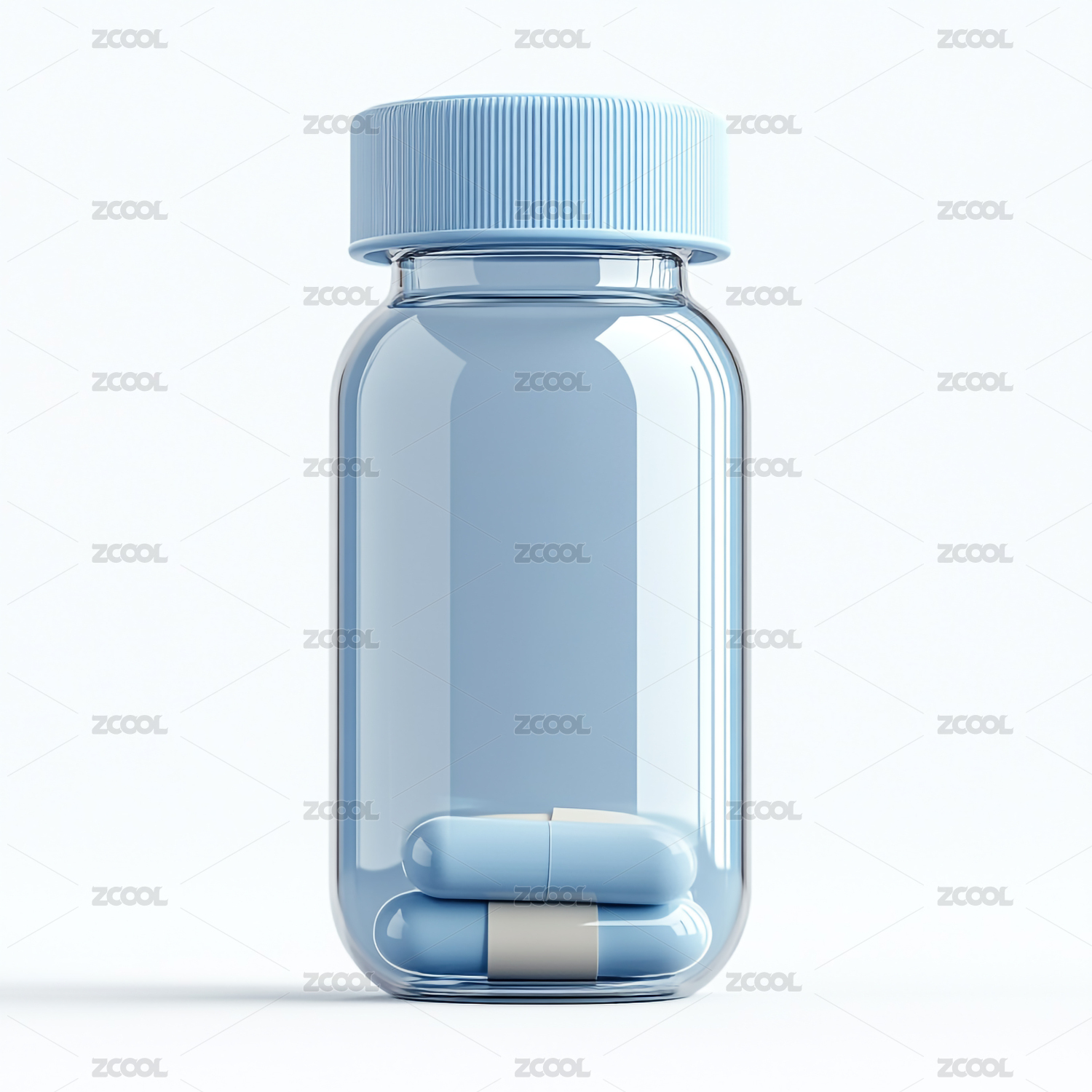 卡通淡蓝色立体医学药品药瓶胶囊模型插画