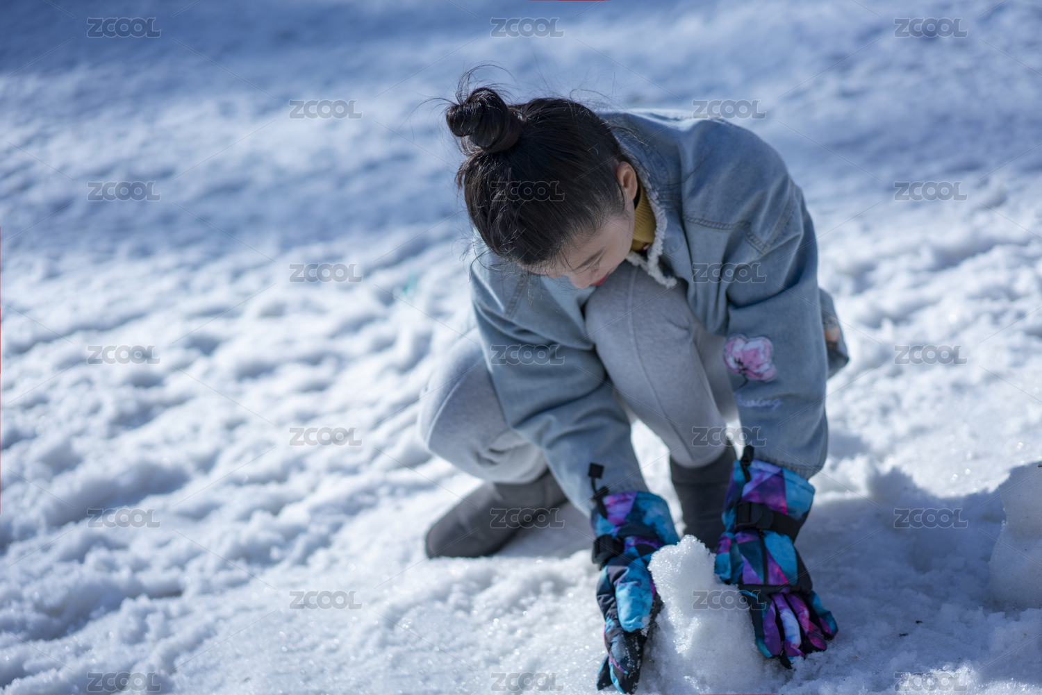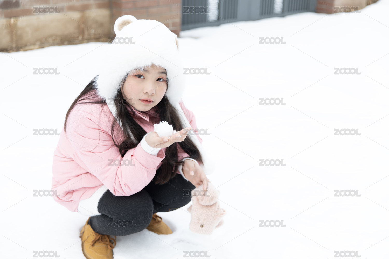 丸子头,下雪,雪地,阳光,红色围巾,红色大衣,白色毛衣,南京,东南大学,树木