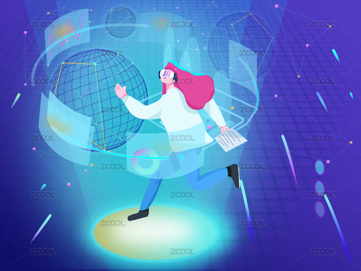 元宇宙插画人工智能高科技未来虚拟玩家模版