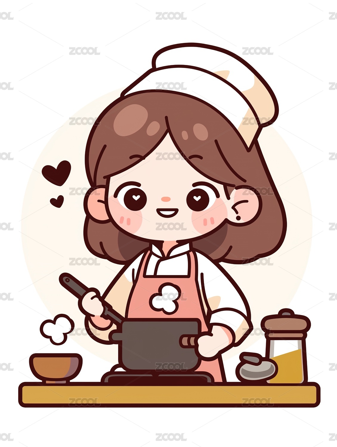 城市室内厨房中女孩烹饪健康美食矢量插画
