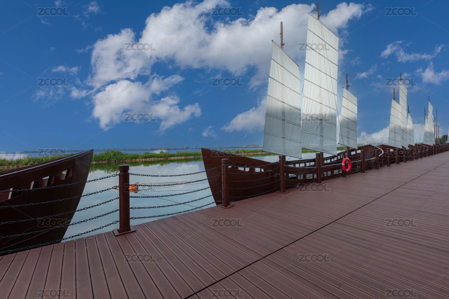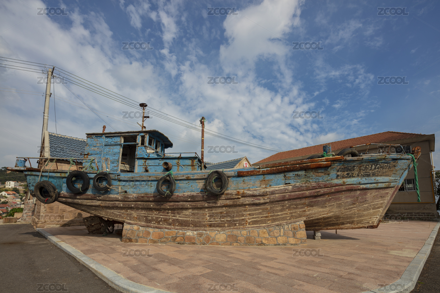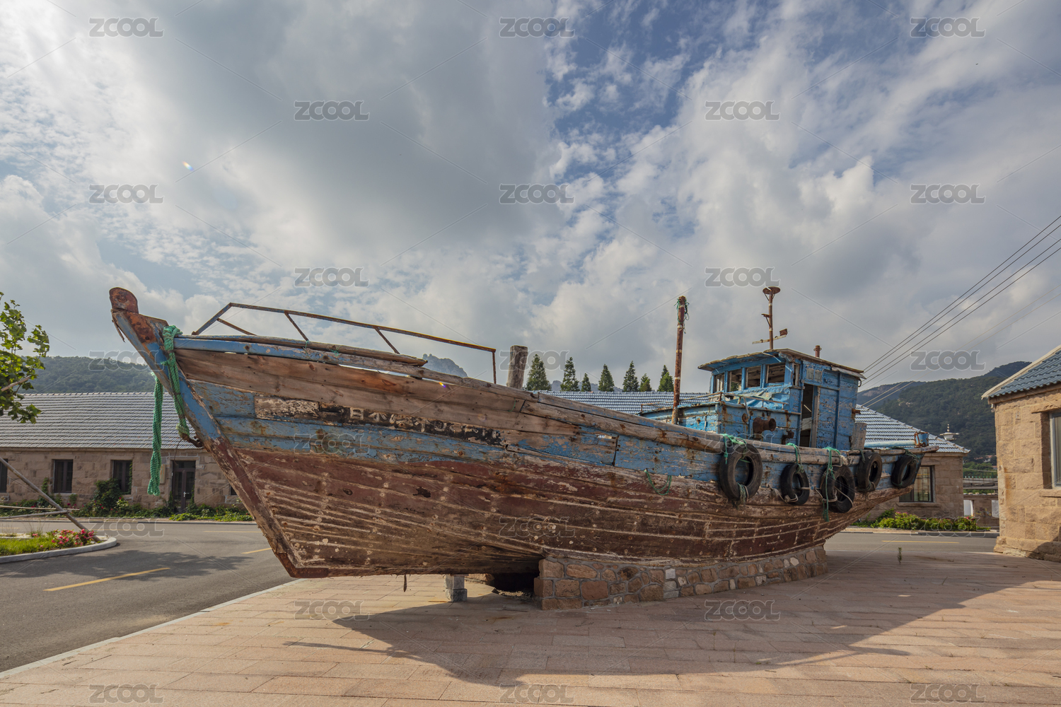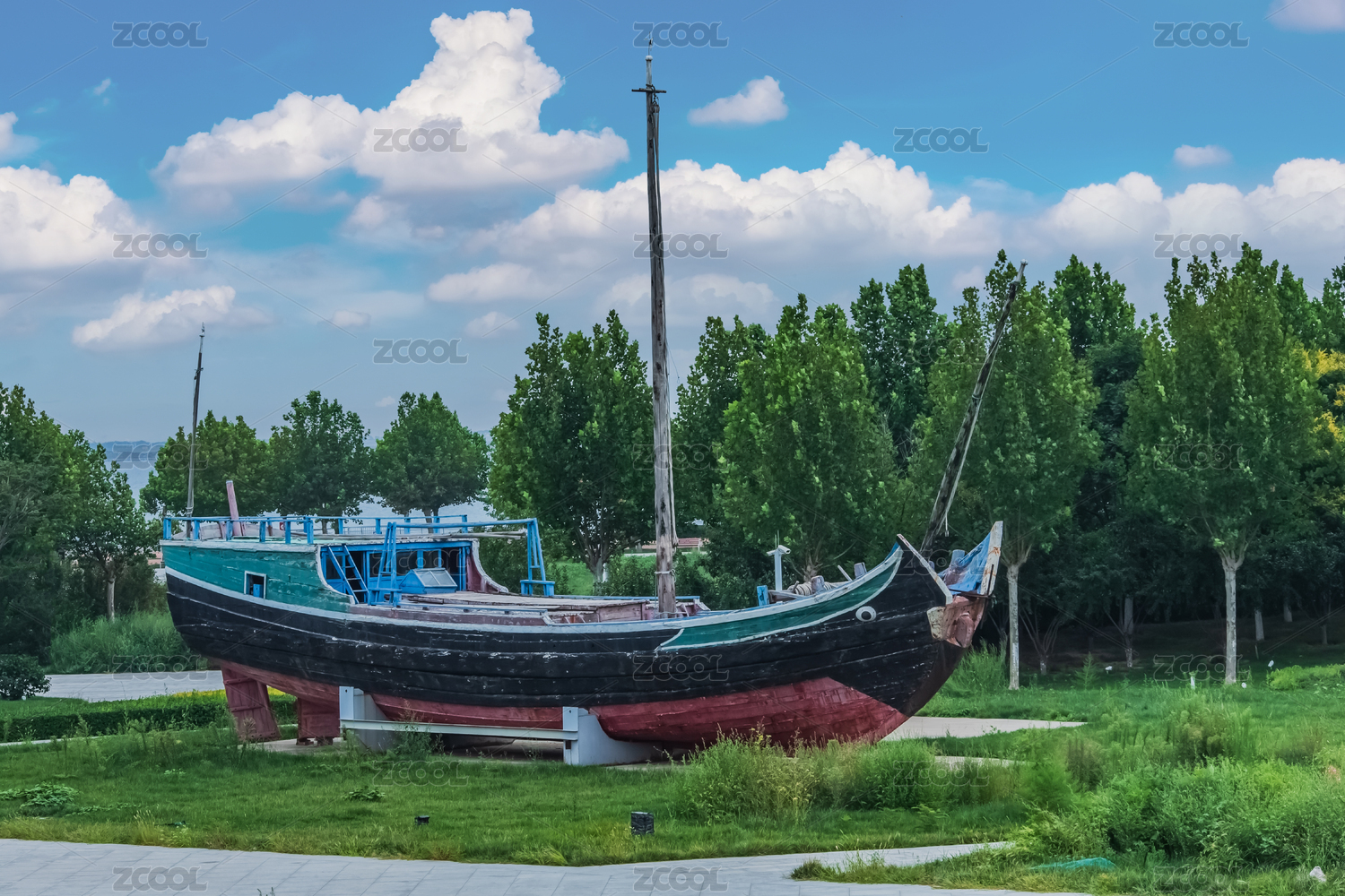古船,装置,民间艺术,户外,船体,蓝天白云,天空,晴朗,草圃,船坞