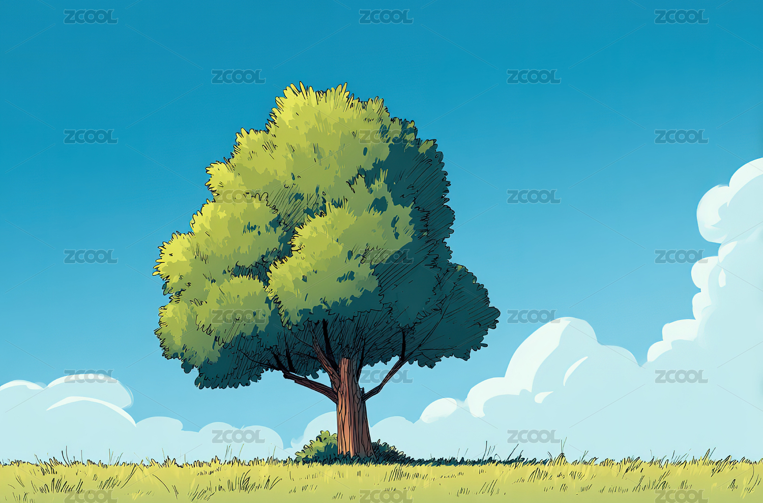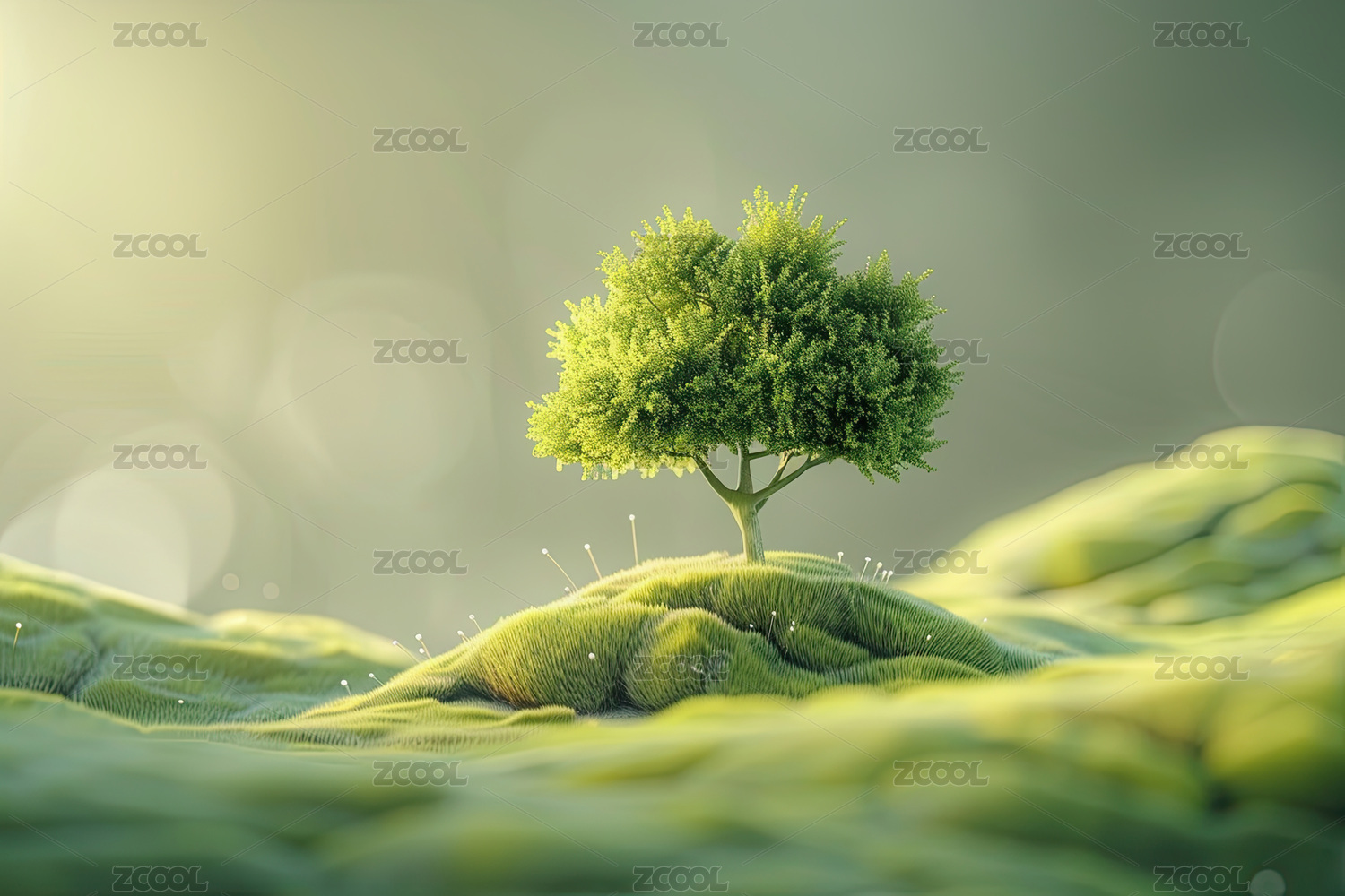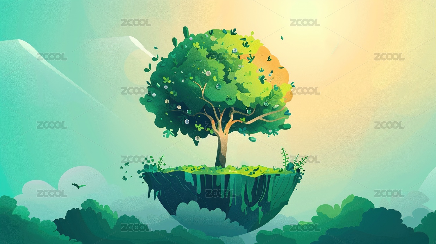 树,一棵树,草地,简约,背景,春天,植树节,绿色,抽象,插画
