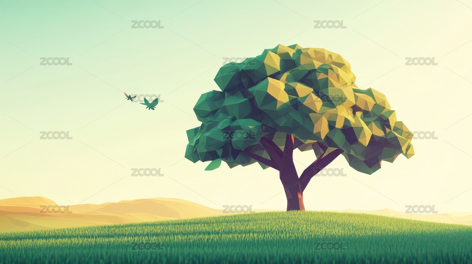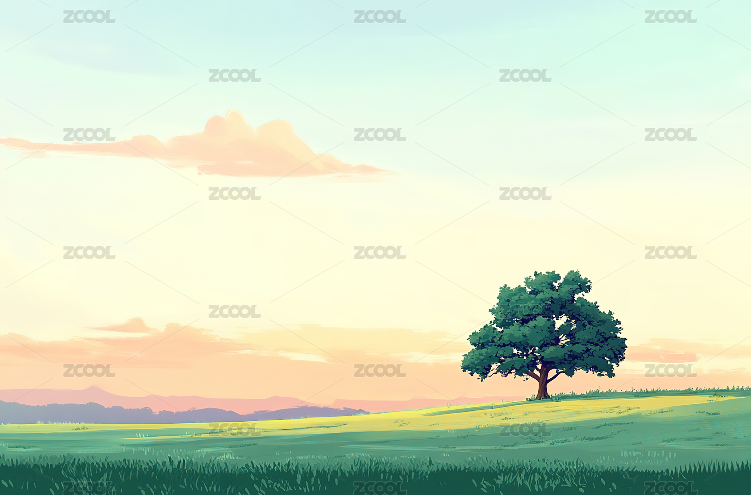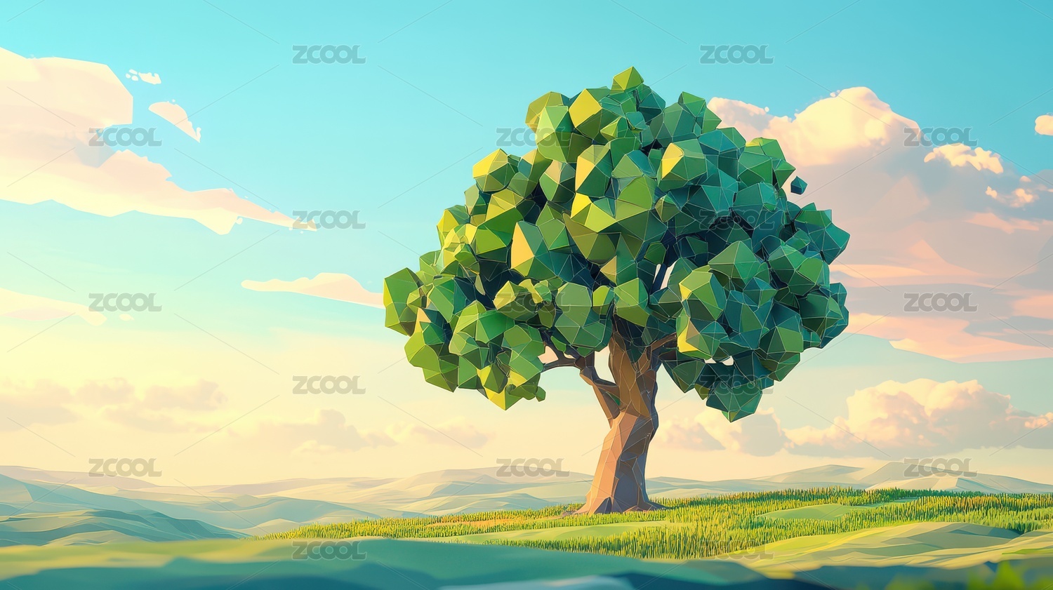 树,一棵树,草地,简约,背景,春天,植树节,绿色,抽象,插画