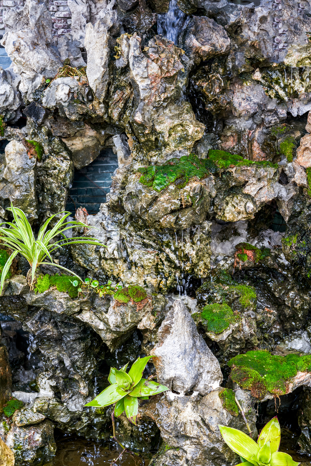花园里的假山流水景观
