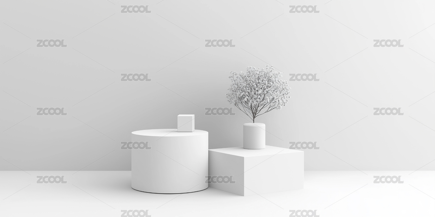 白色清新立体几何极简空间产品展板背景