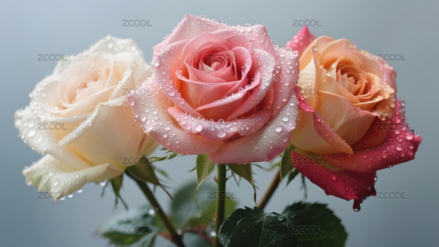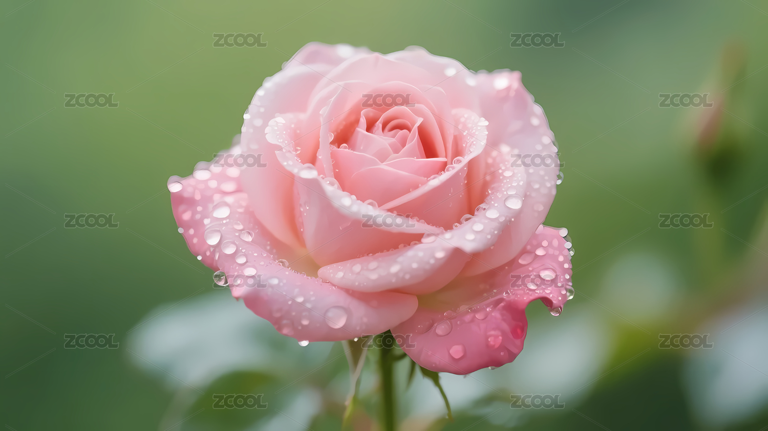 粉玫瑰水珠清新自然