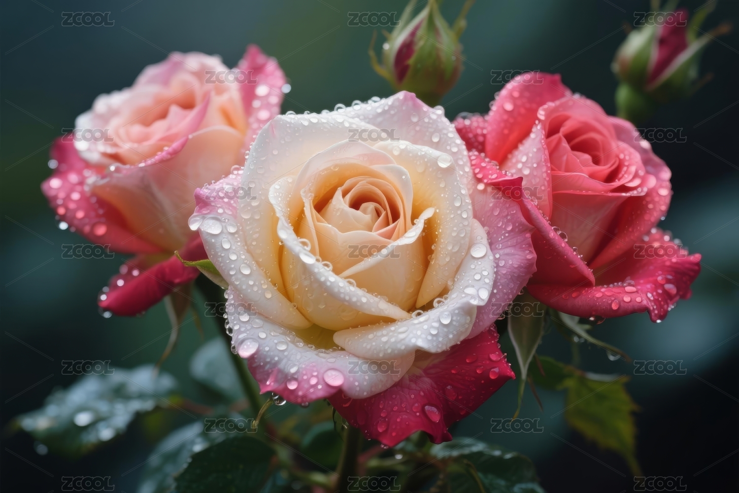 粉玫瑰配晶莹水珠