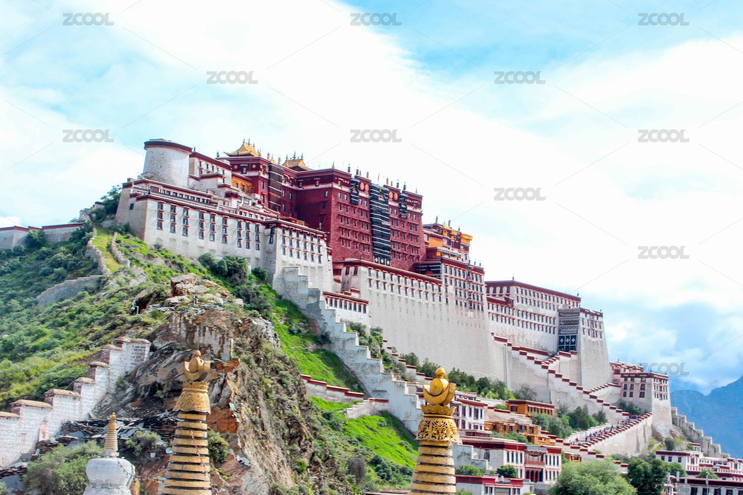 中国西藏拉萨布达拉宫白宫和红宫仰望布达拉宫