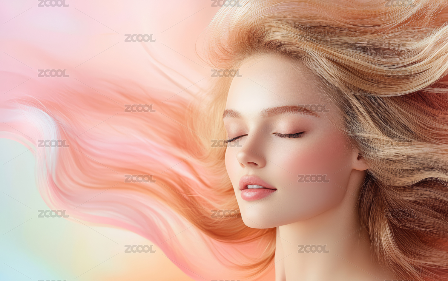 铂金色长发美女侧颜,发丝柔顺闪亮
