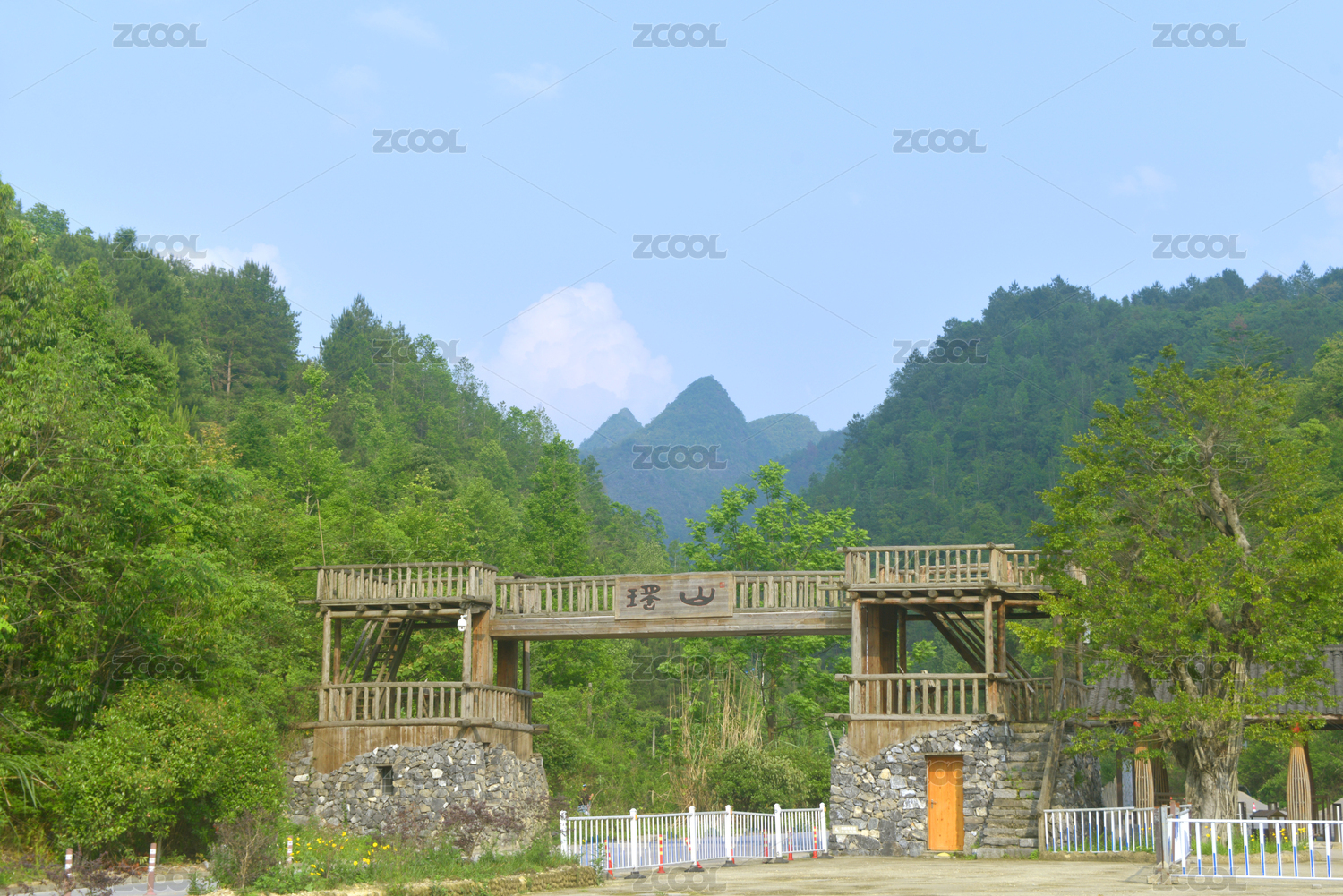 贵州黔南荔波县瑶山古寨游客中心的寨门