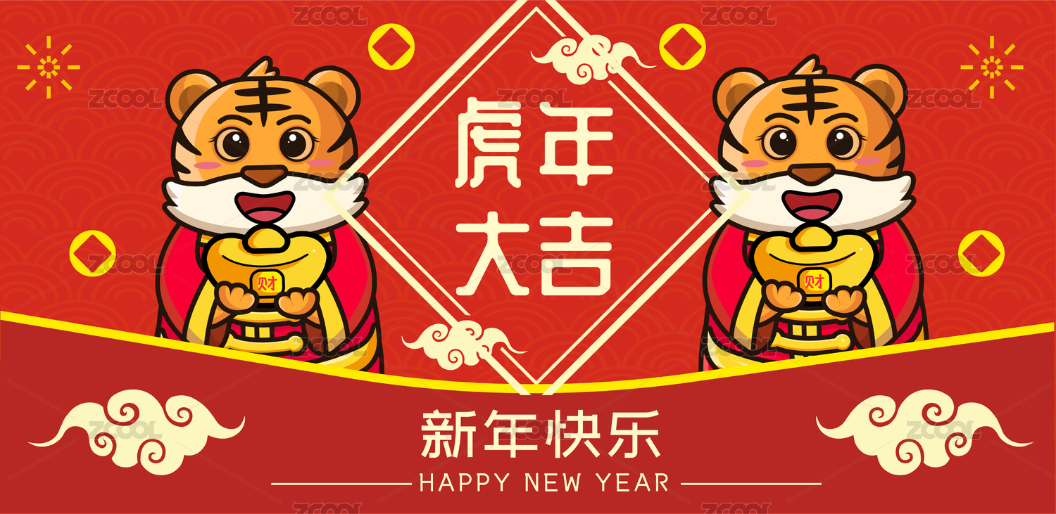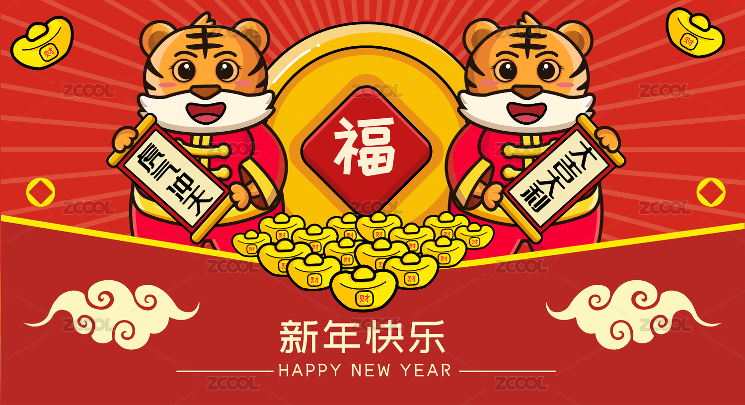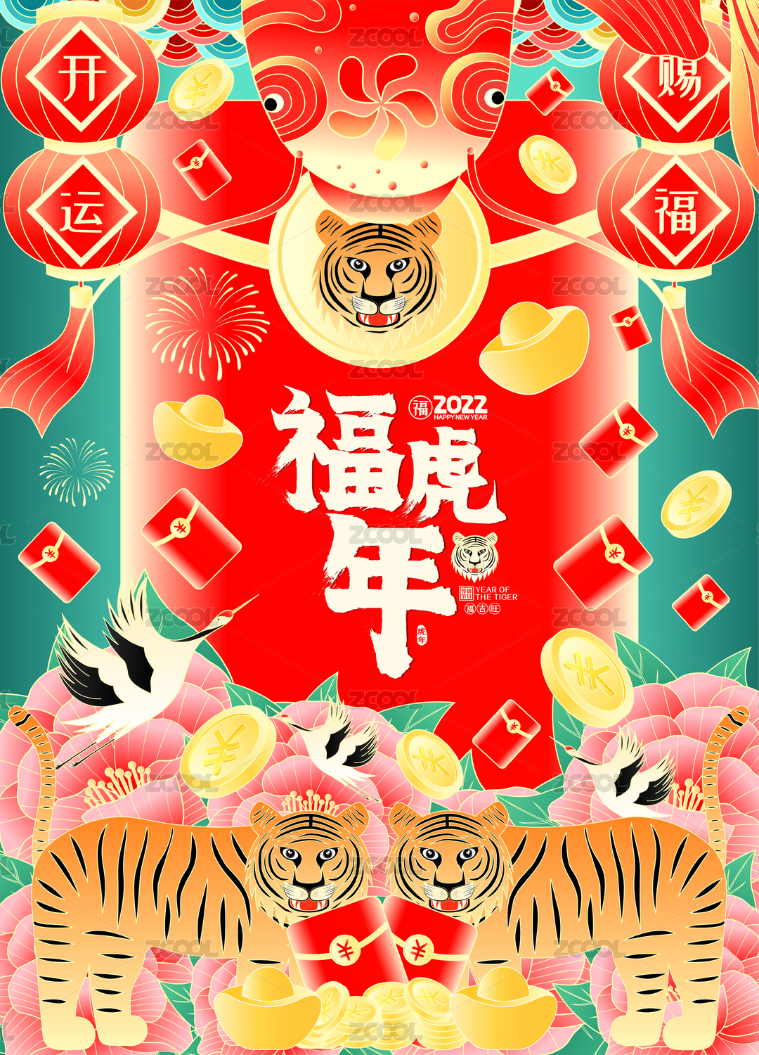 国潮福虎年锦鲤旺运红包瑞虎呈祥春节海报
